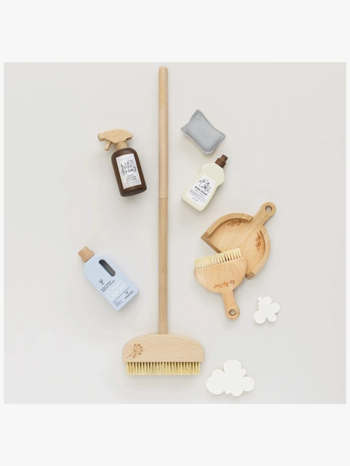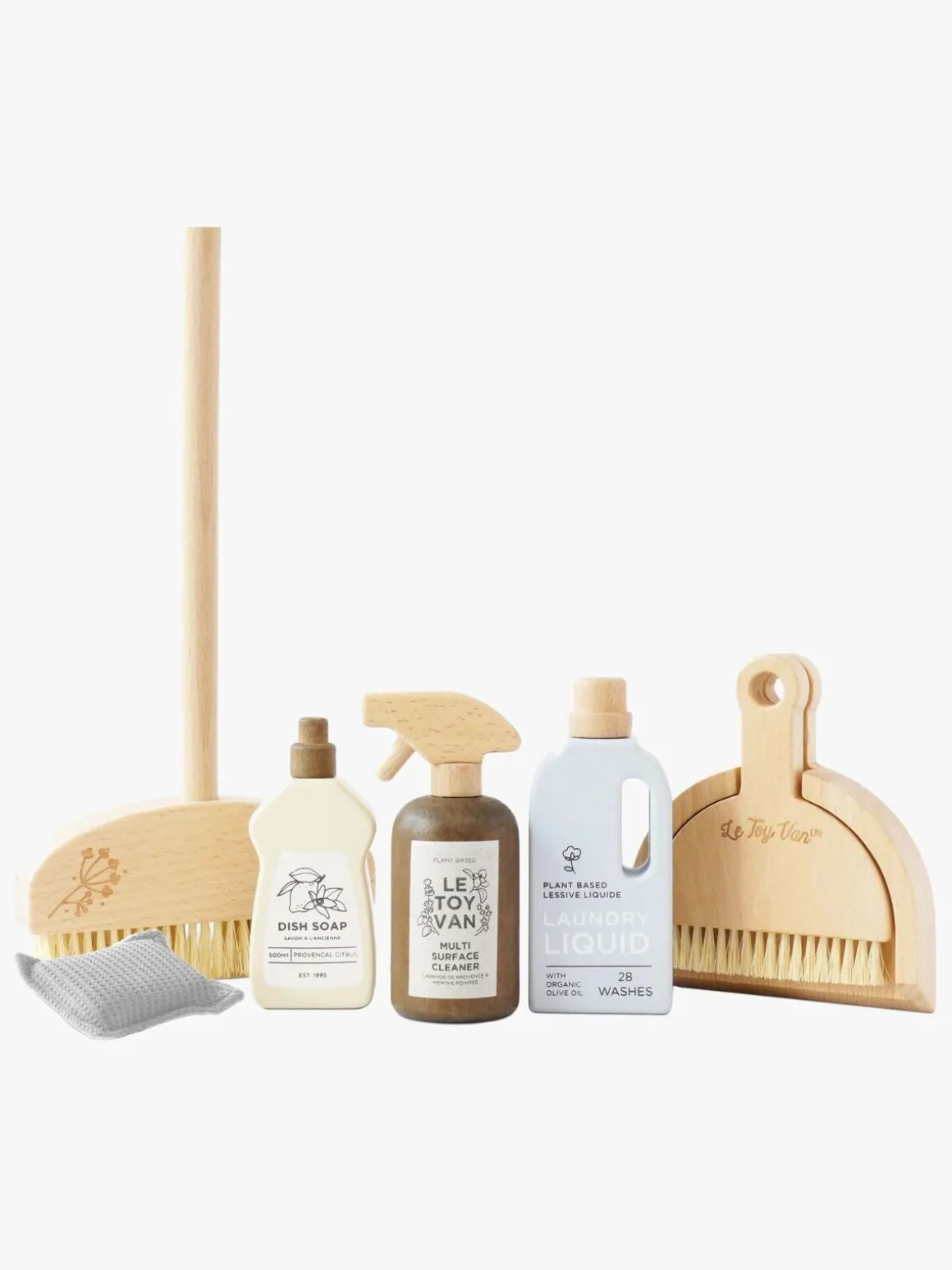 – Indeholder: 1 børste, 1 fejekost, 1 svamp, 1 fejebakke, 3 tilbehør.