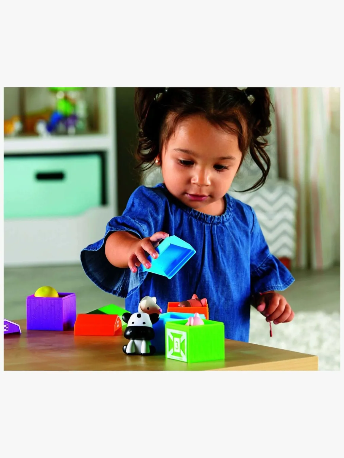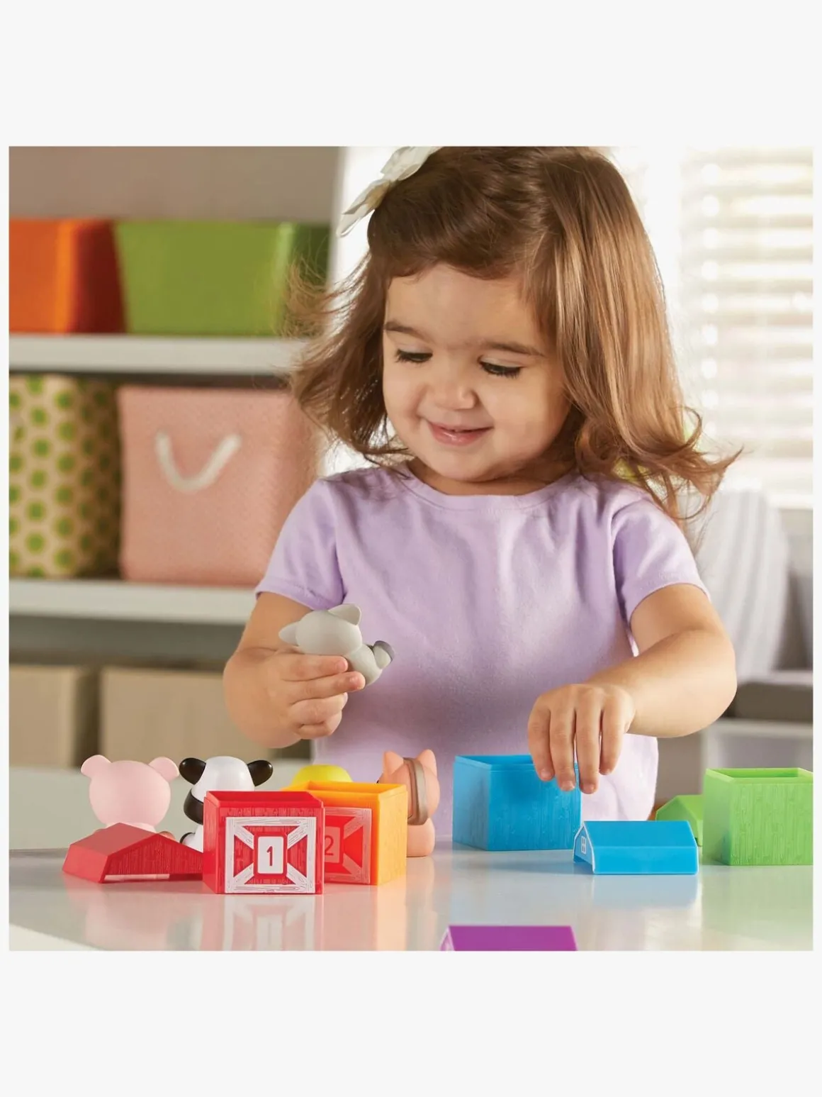 – Indeholder: 5 nummererede lader, 5 små bondegårdsdyr.