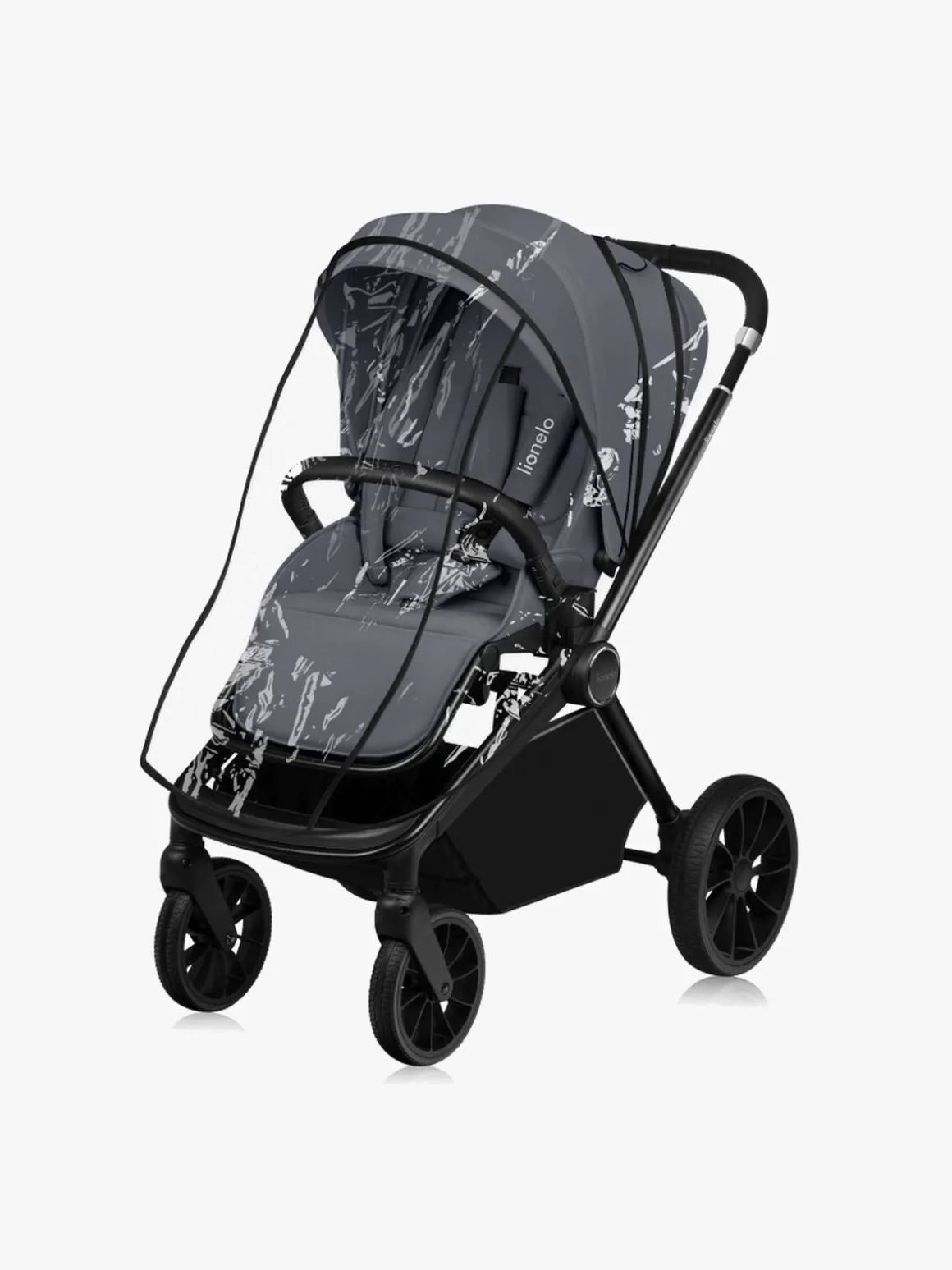 – Indeholder: 1 klapvogn, 1 liggedel, 1 i-Size-godkendt babyautostol, 1 myggenet, 1 regnslag, 1 adapter, 1 kørepose.