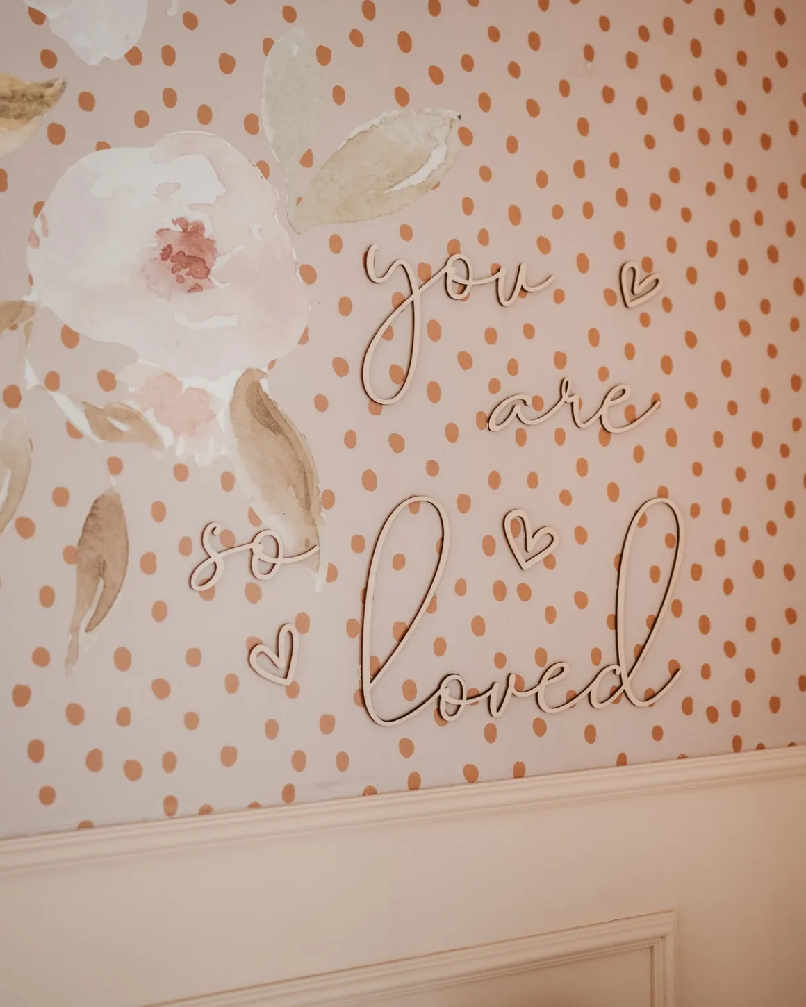 – Mål i cm (højde x bredde): You 17×12, Are 17×5, So 5×9, Loved 30×17.