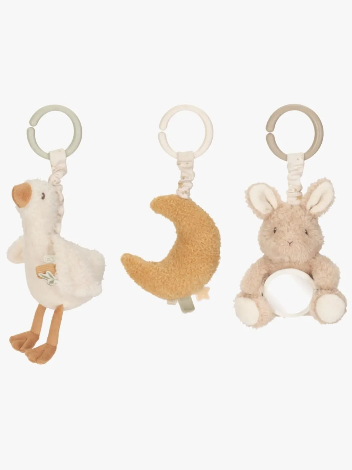 – Legetøjet har forskellige raslende materialer, der er perfekte for små hænder at føle på og trække i.