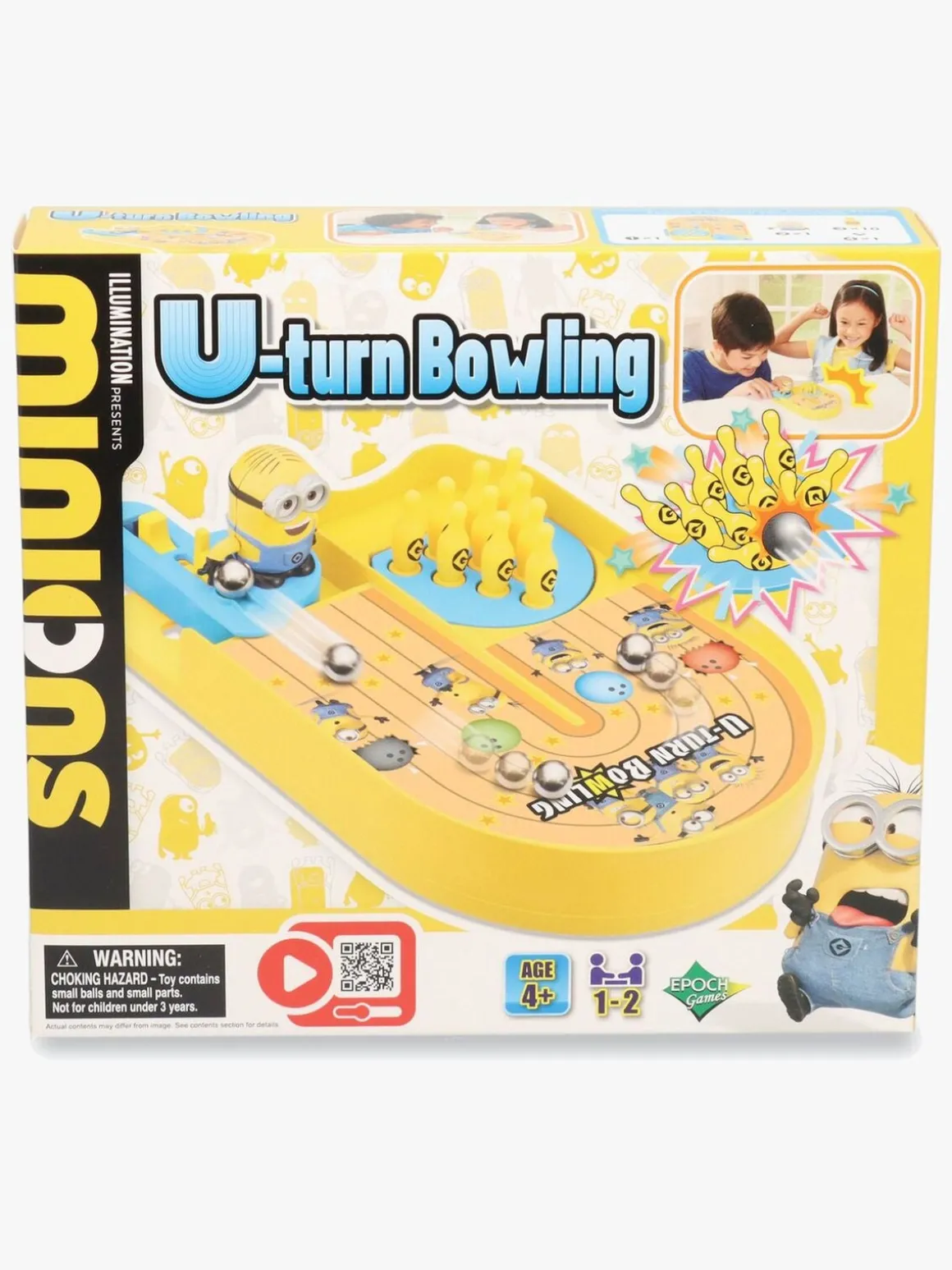 – Indeholder: 1 spillebræt, 1 Minion-figur, 10 bowlingkegler, 1 kugle.