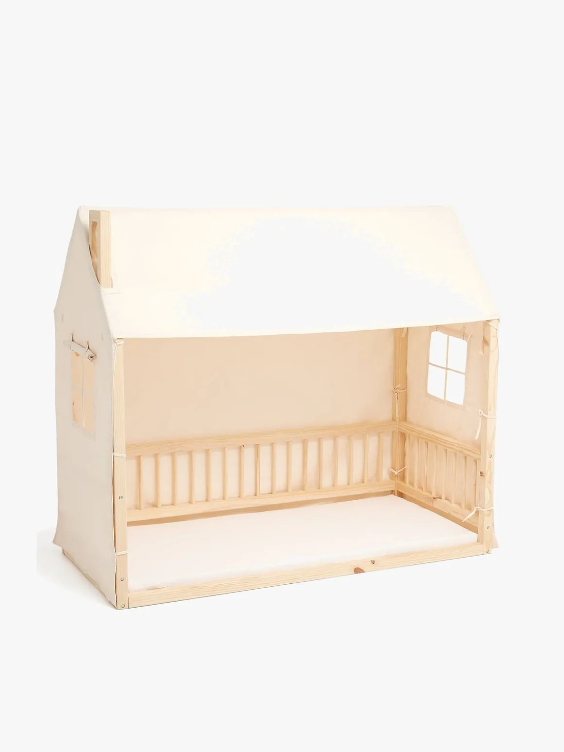 Mason er en sød husseng fra Minitude, hvor dit barn kan sove godt om natten og lege om dagen. Sengen er udstyret med skorsten og stakit, så den ligner et rigtigt hus. Den hyggelige sengehimmel fra Minitude har vinduer på de to kortsider. Siderne kan lukkes ved hjælp af velcro eller rulles op og bindes fast. Madrassen placeres direkte på gulvet og skaber en hyggelig følelse af at sove i en hule!Softi Plus madras fra BabyMatex med et aftageligt betræk. Den har en optimal densitet for bedst mulige komfort. Madrassens ene side er flad til almindelig brug, mens den anden side er profileret, hvilket giver massage- og ventilationsfunktion. Madrasbetrækket består af to dele – den ene side er lavet af frotte for en skøn og varm følelse, og den anden er lavet i et almindeligt bomuldsstof for en svalere fornemmelse. Madrassen er Oeko-Tex 100-certificeret, hvilket sikrer at den er fri fra skadelige stoffer. Mål: H148,5 x B79 x L169 cm. Sengemål: 70 x 160 cm.Madrasmateriale: – Fyld: 100 % polyuretanskum. – Betræktop: 33 % bomuld, 33 % PES, 34 % polyamid. – Betrækbund: 82 % bomuld, 18 % PES.Sengemateriale: –Fyrretræ.Sengehimmelmateriale: – 100 % bomuldskanvas.