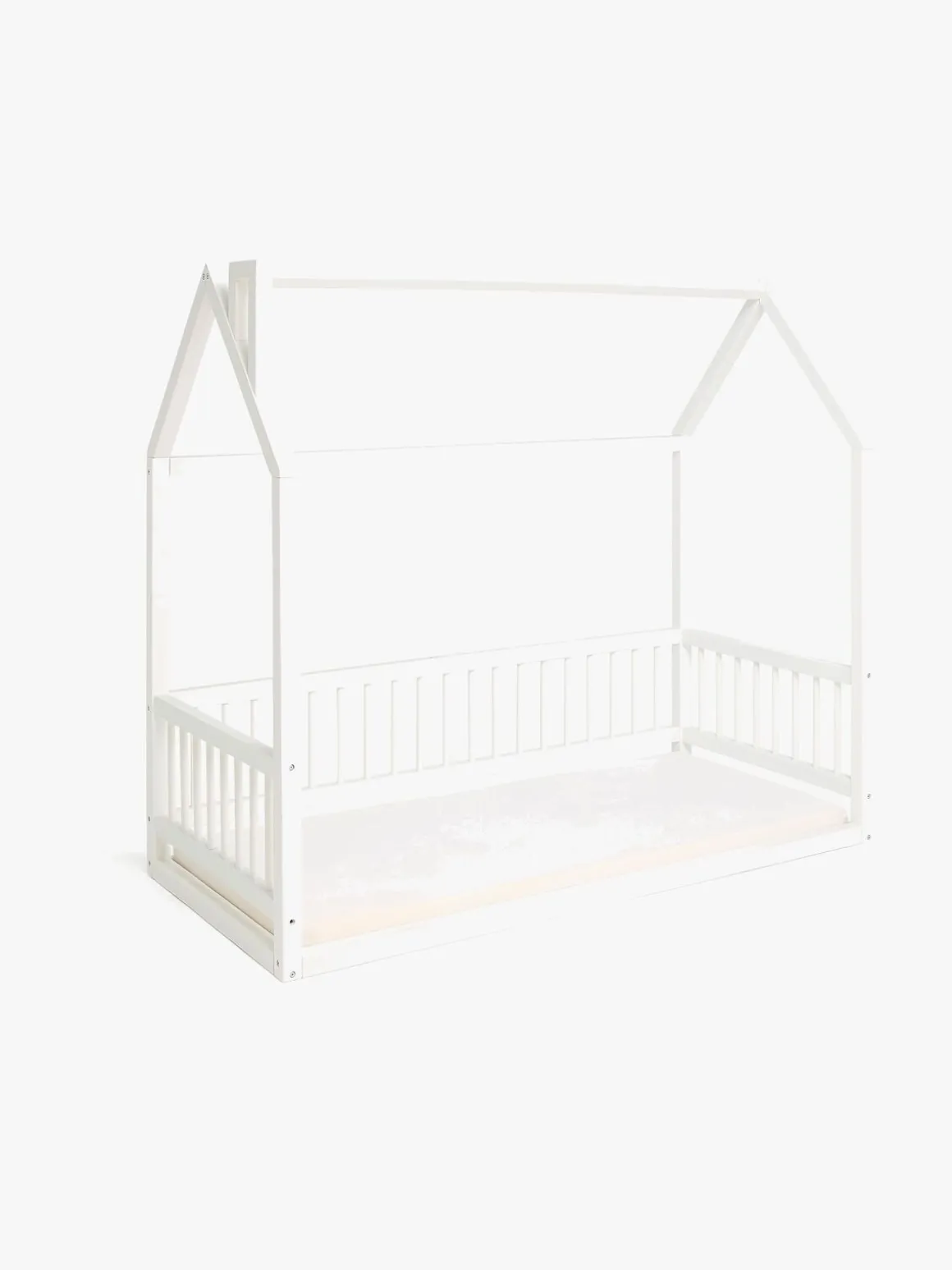 Den husformede børneseng, Mason fra Minitude i juniorstørrelse er en skøn og sjov seng for børnene at sove i. Den er formet som et hus og er let at lege med, når man ikke lige skal sove i den. Huset har skorsten og stakit, og madrassen lægges i gulvniveau, så man rigtig kan lege hule.