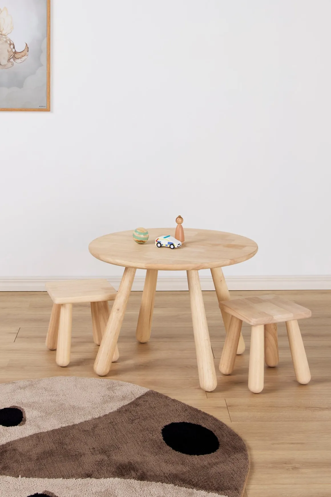 Minitude Nordic Rundt Bord & Firkantede Skamler, Natural