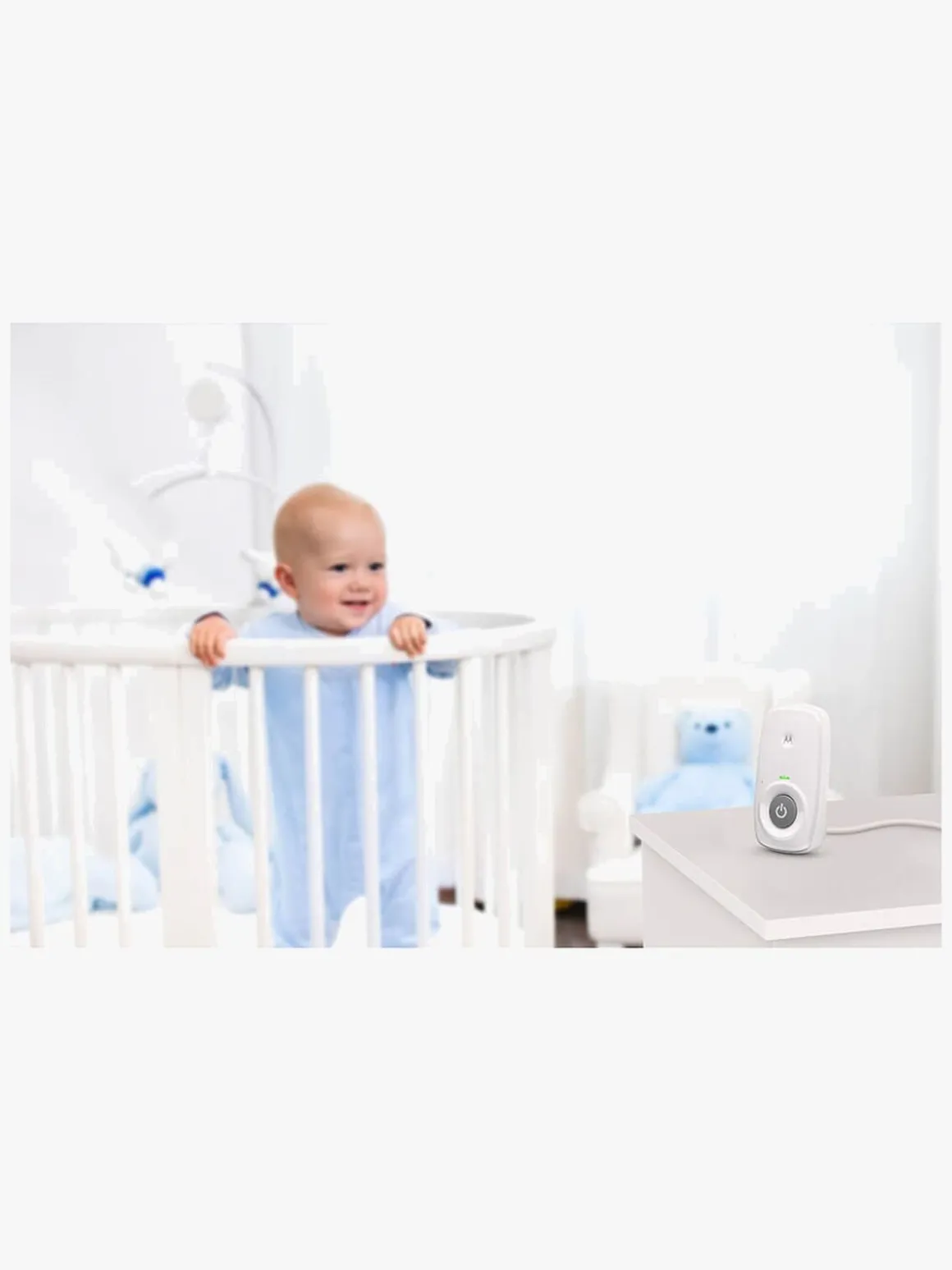 – Der er trådløs forbindelse mellem baby- og forældreenheden. Babyenheden skal tilsluttes et strømkabel (medfølger).
