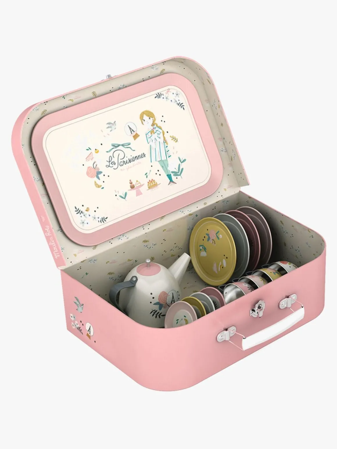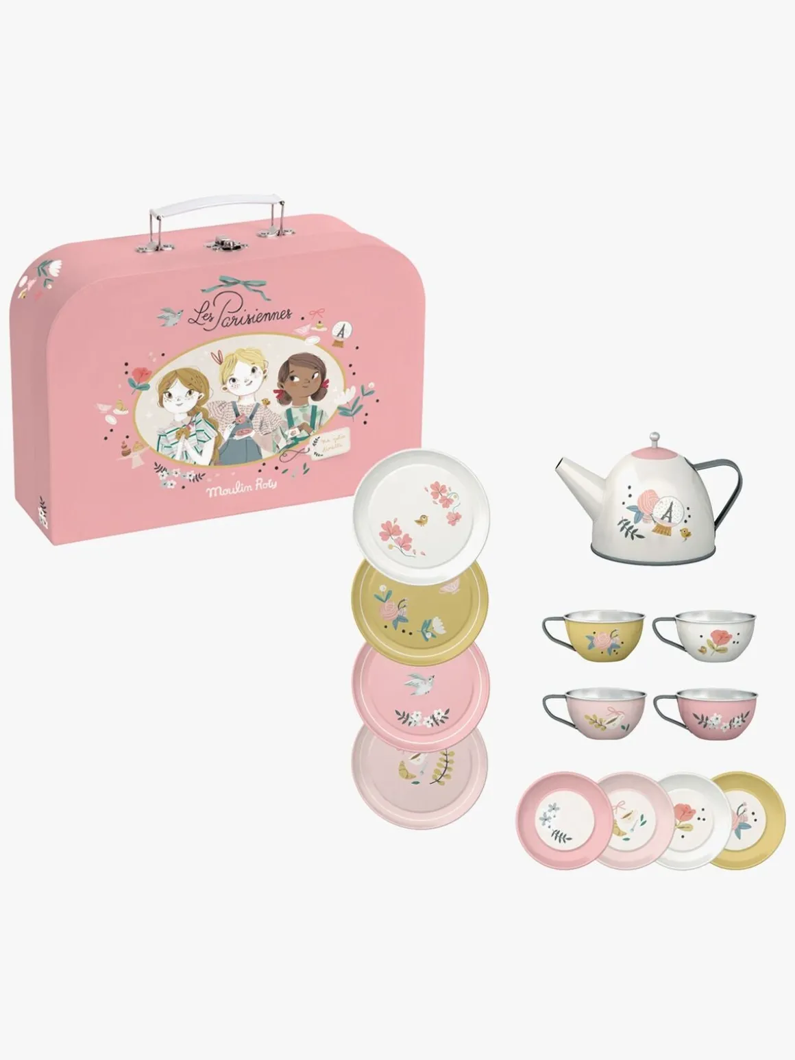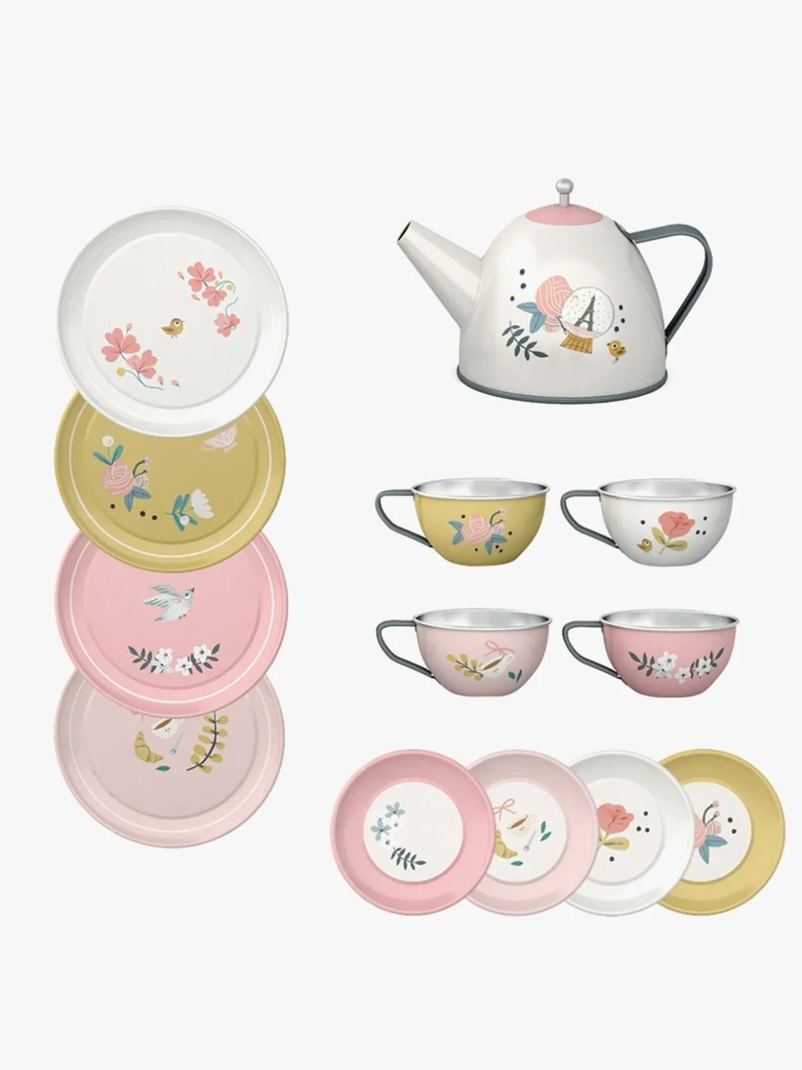 – Indeholder: 1 taske, 1 tepotte, 1 serveringsbakke, 4 tekopper, 4 underkopper, 4 tallerkener.
