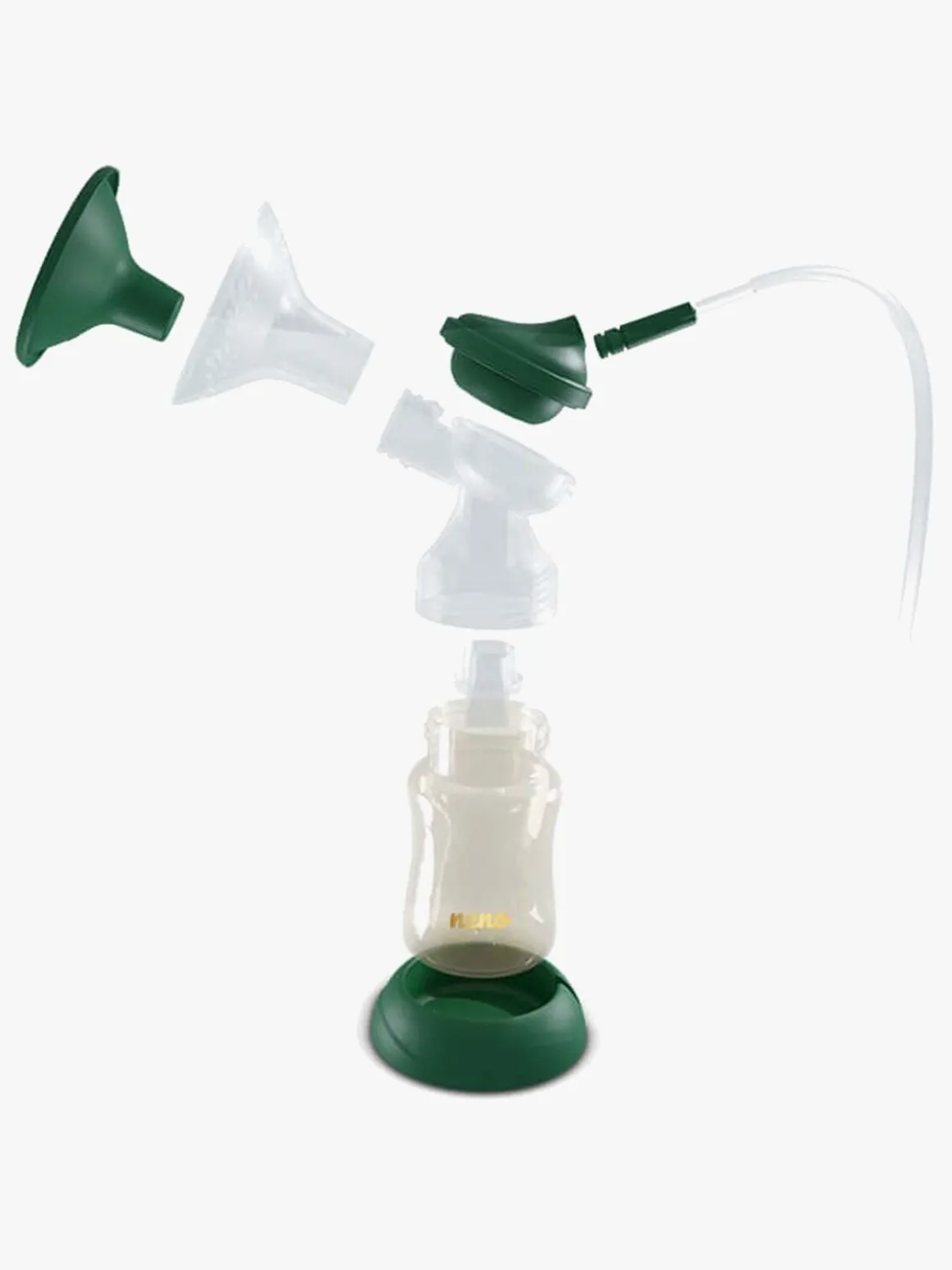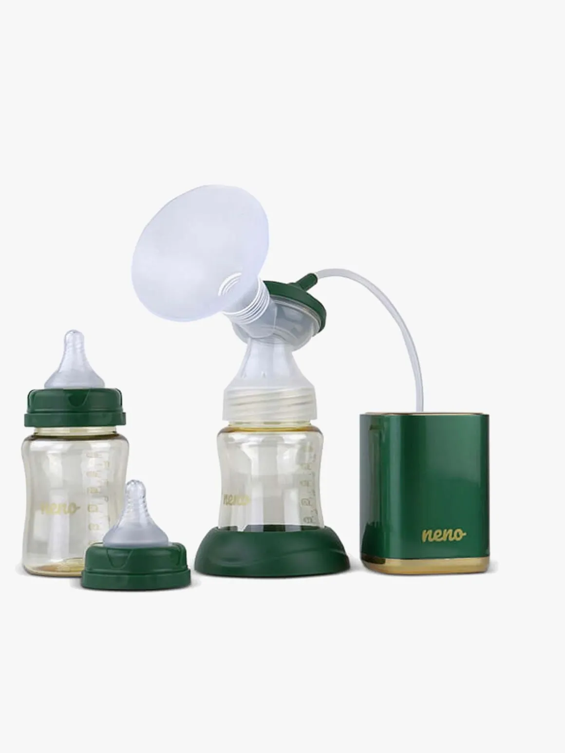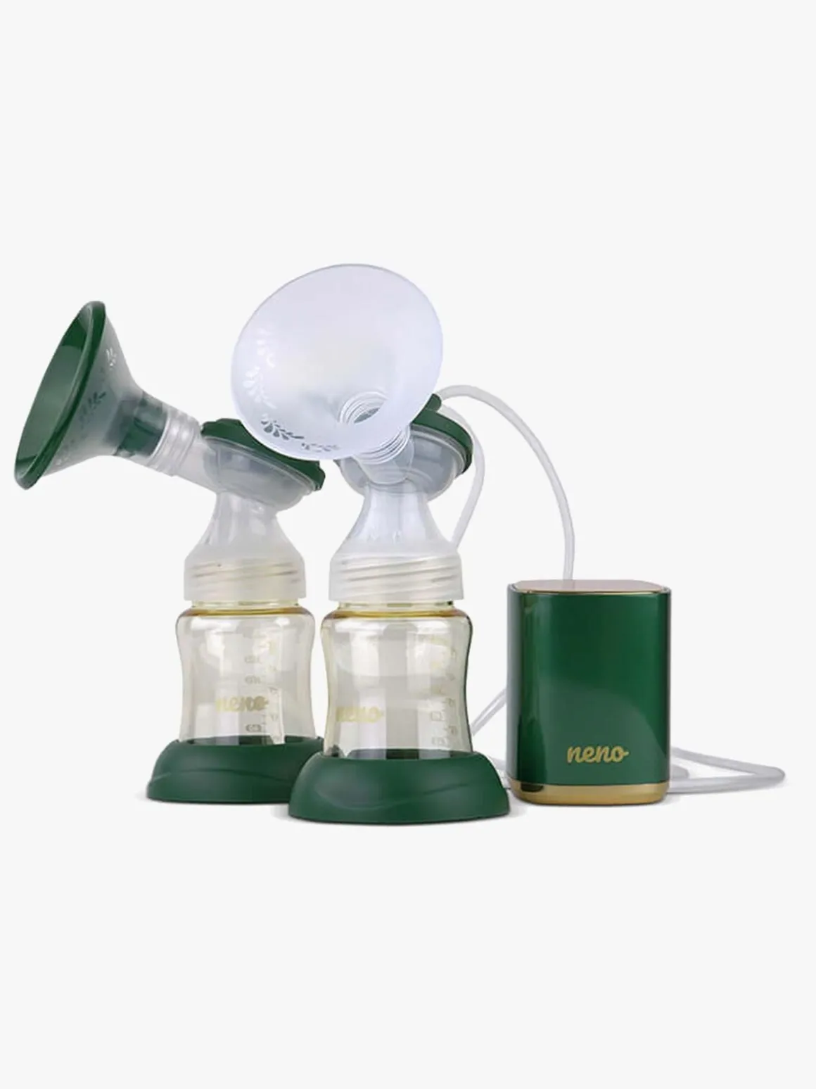 – I dette sæt får du pumpenheden, to mælkeflasker og to sutter. Ingen del af brystpumpen indeholder BPA, hvilket gør den sikker at bruge. Der er et genopladeligt Lithium-lon batteri i produktet, som oplades med et USB-C kabel.