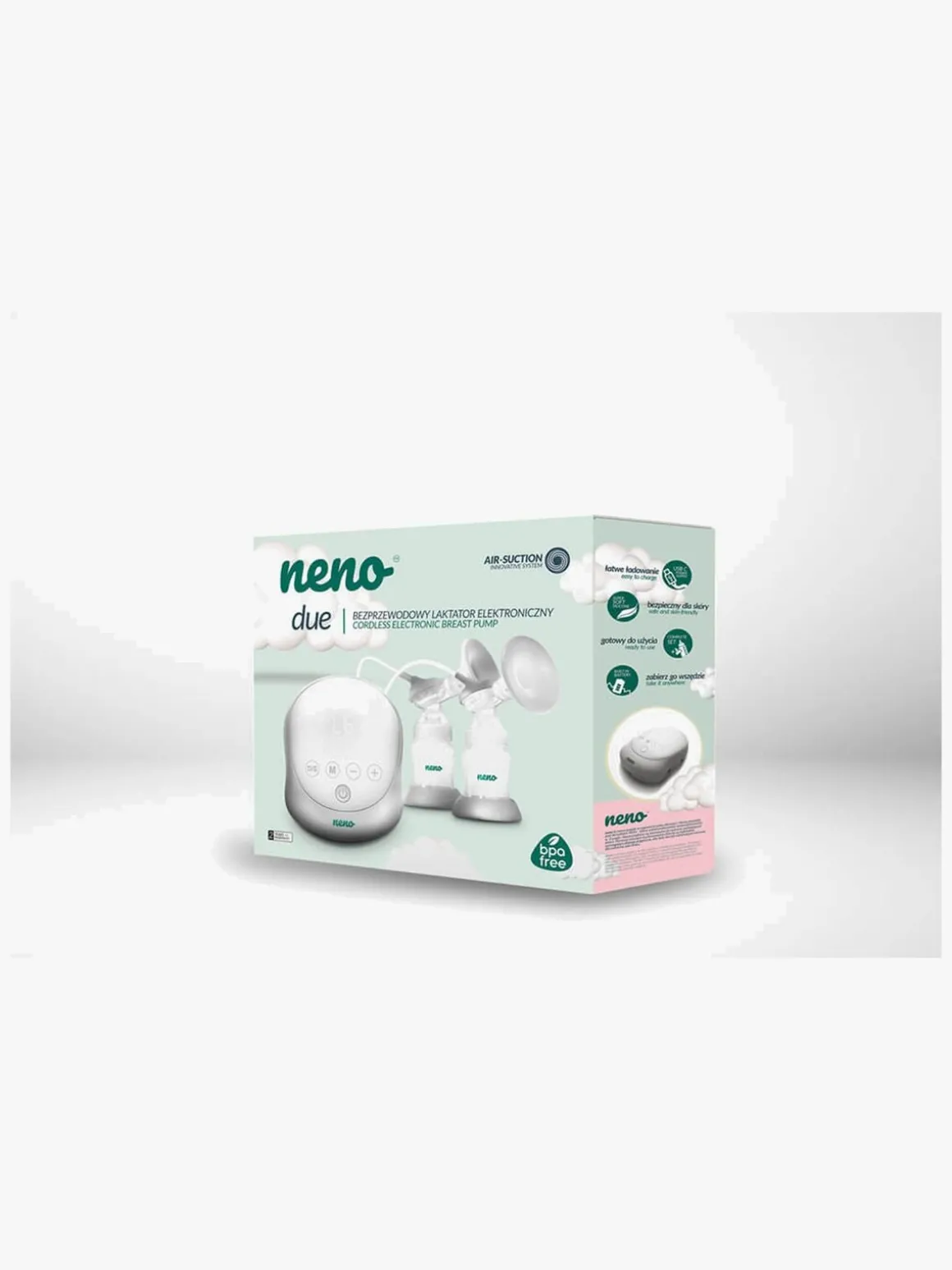 Neno Due har en indbygget stimuleringsindstilling, som du bruger til at stimulere mælkekirtlerne med inden udmalkning, hvilket giver en bedre mælkestrøm. Du kan indstille enheden efter egne behov og vælge, om du vil pumpe fra det ene eller begge bryster samtidigt. Efter 30 minutters inaktivitet slukker pumpen automatisk.