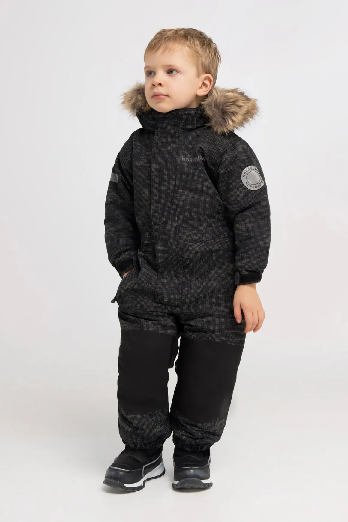 | Egenskaber | Fleecefor Fri for fluorcarboner Fodstropper Refleksdetaljer Aftagelig hætte Tapede sømme Vandtæt Vindtæt |