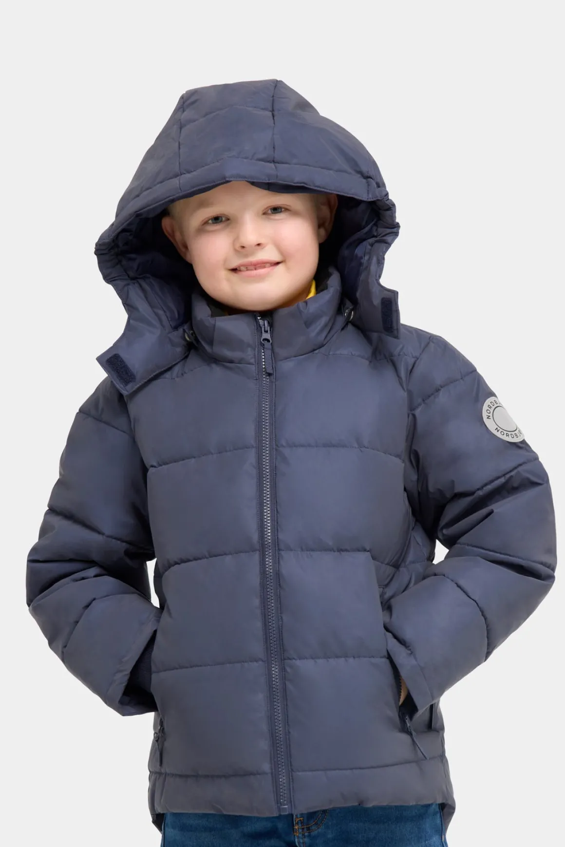 – Med hætte og lynlås.