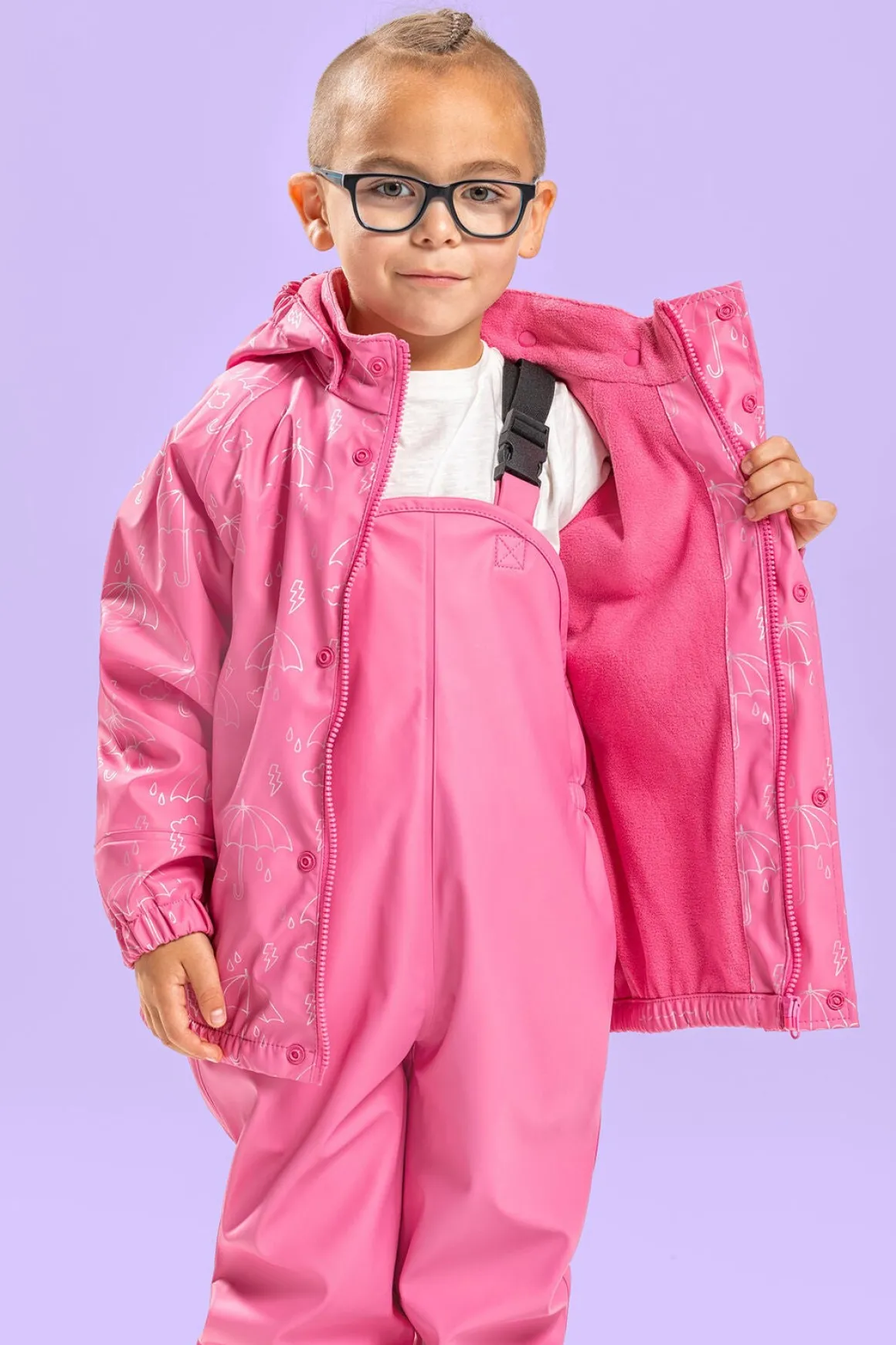 | Egenskaber | Fodstropper Refleksdetaljer Aftagelig hætte Vandtæt Vandafvisende Svejsede sømme |