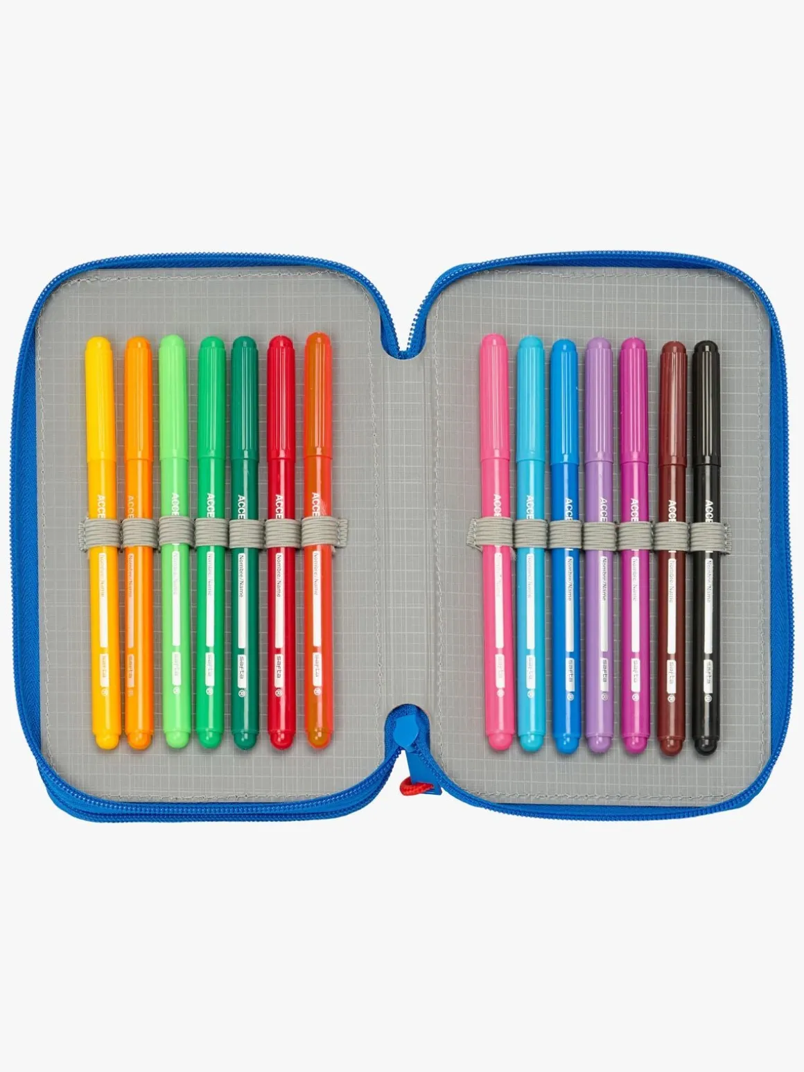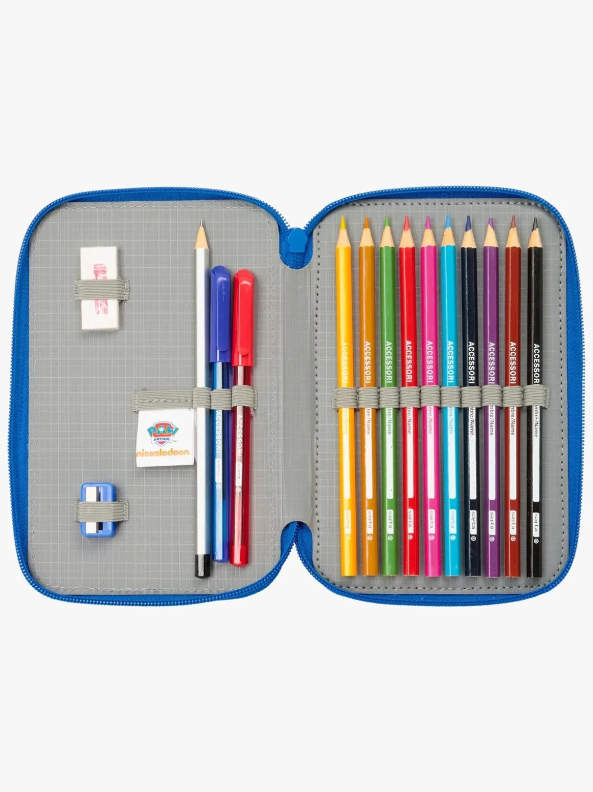 – Indeholder: 1 penalhus, 1 viskelæder, 1 blyantspidser, 1 blyant, 2 kuglepenne, 10 farveblyanter, 14 tusser.
