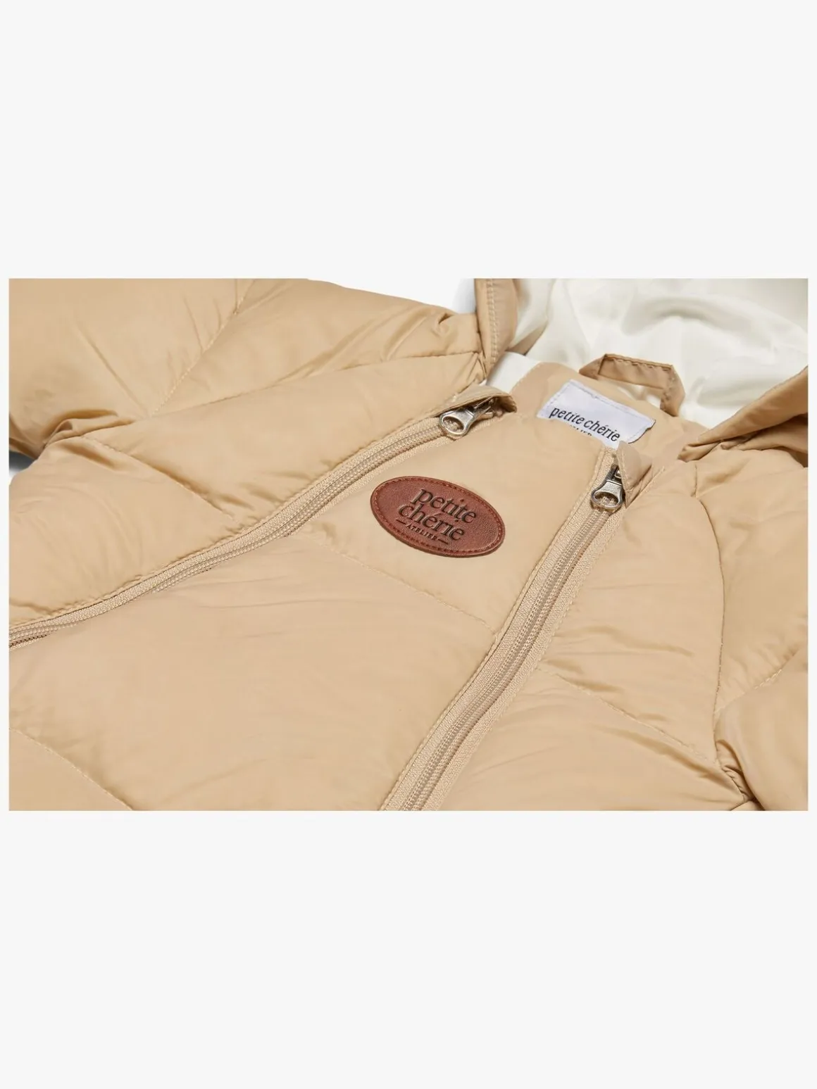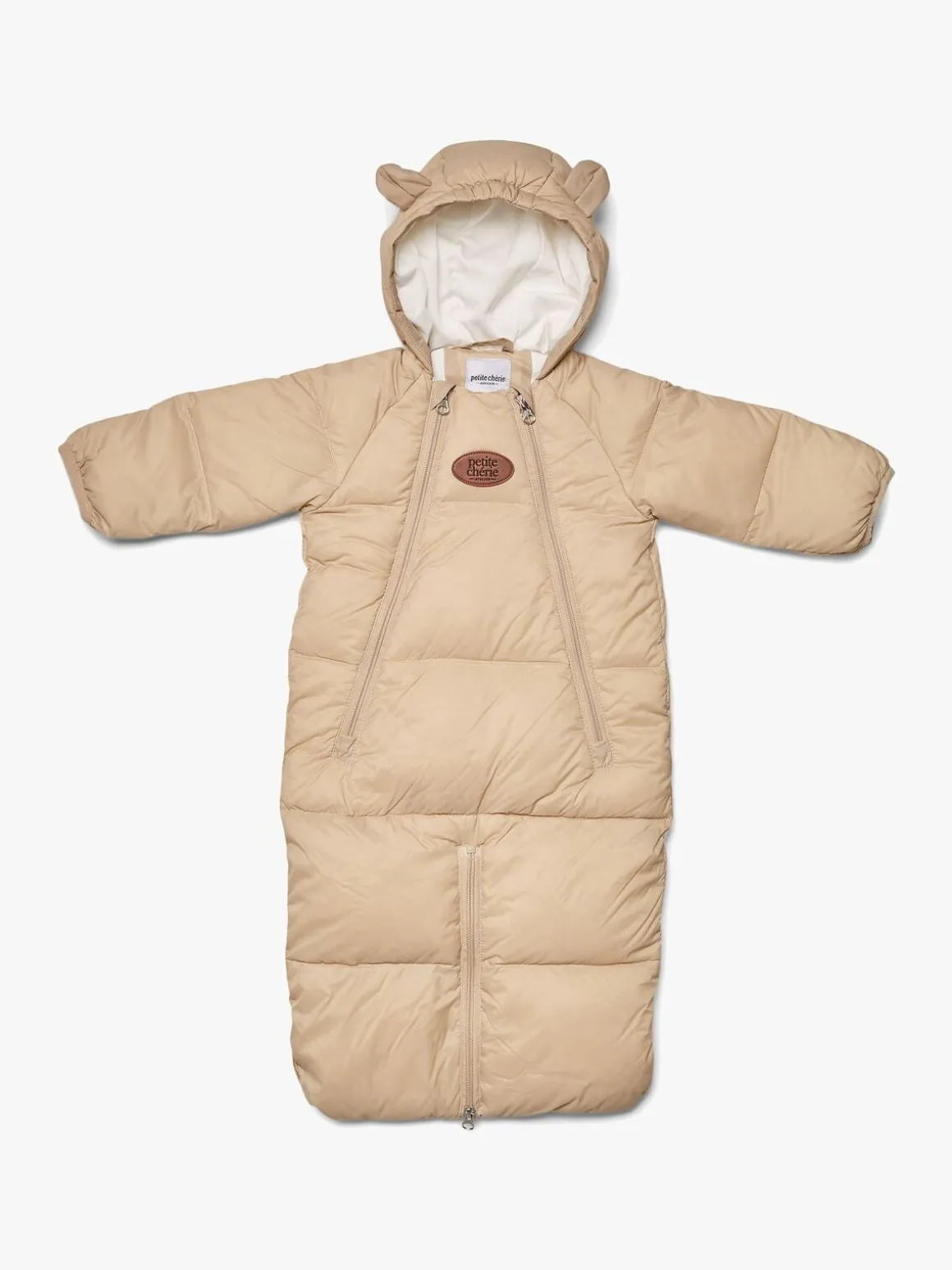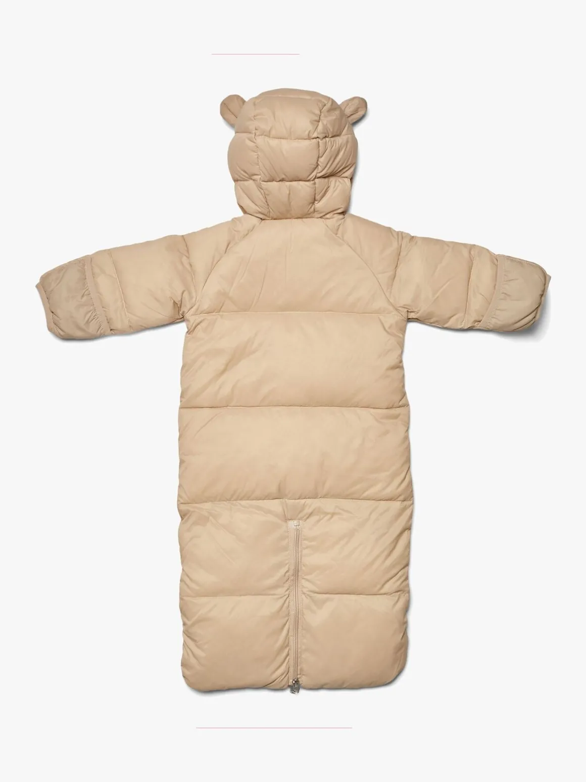| Øvrige mål | Mål str. 0-3 mdr. Længde inkl. hætte 80 cm Længde ekskl. hætte 57 cm Bredde 35 cm Mål str. 3-6 mdr. Længde inkl. hætte 91 cm Længde ekskl. hætte 67 cm Bredde 36 cm |