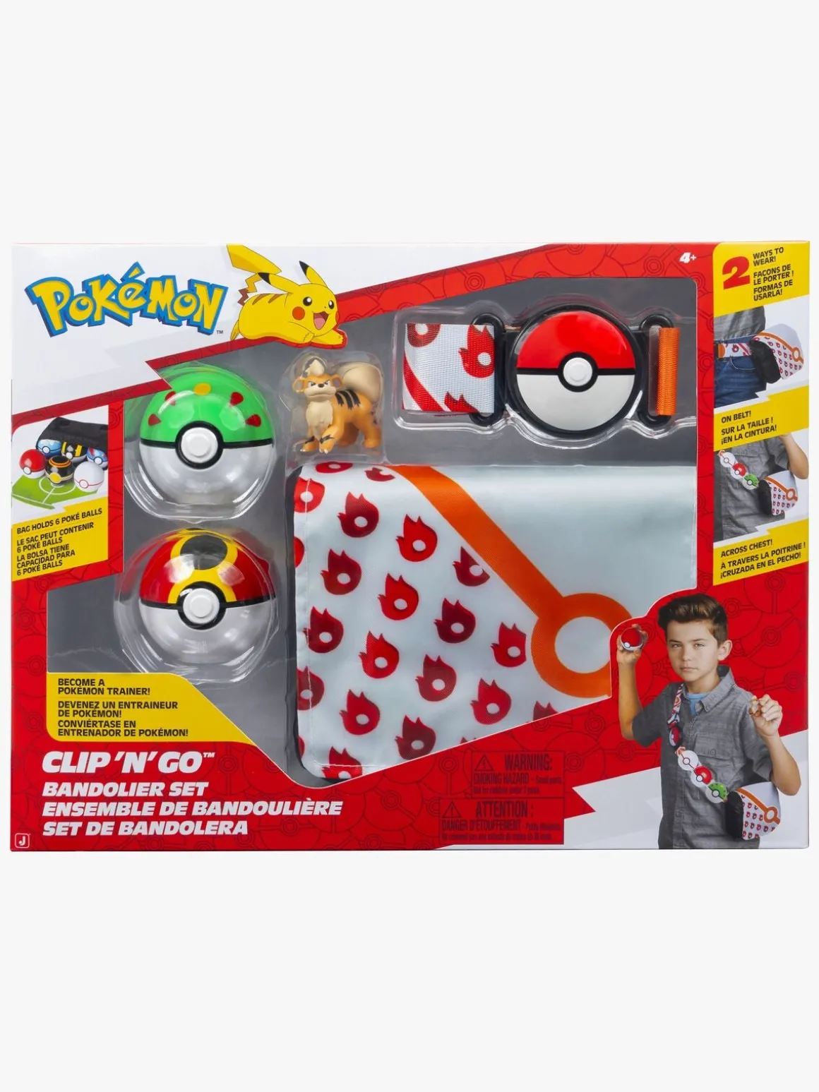– Indeholder: 1 Pokémonen-figur, 2 poké-balls, 1 Bandolier-taske, 1 bælte.