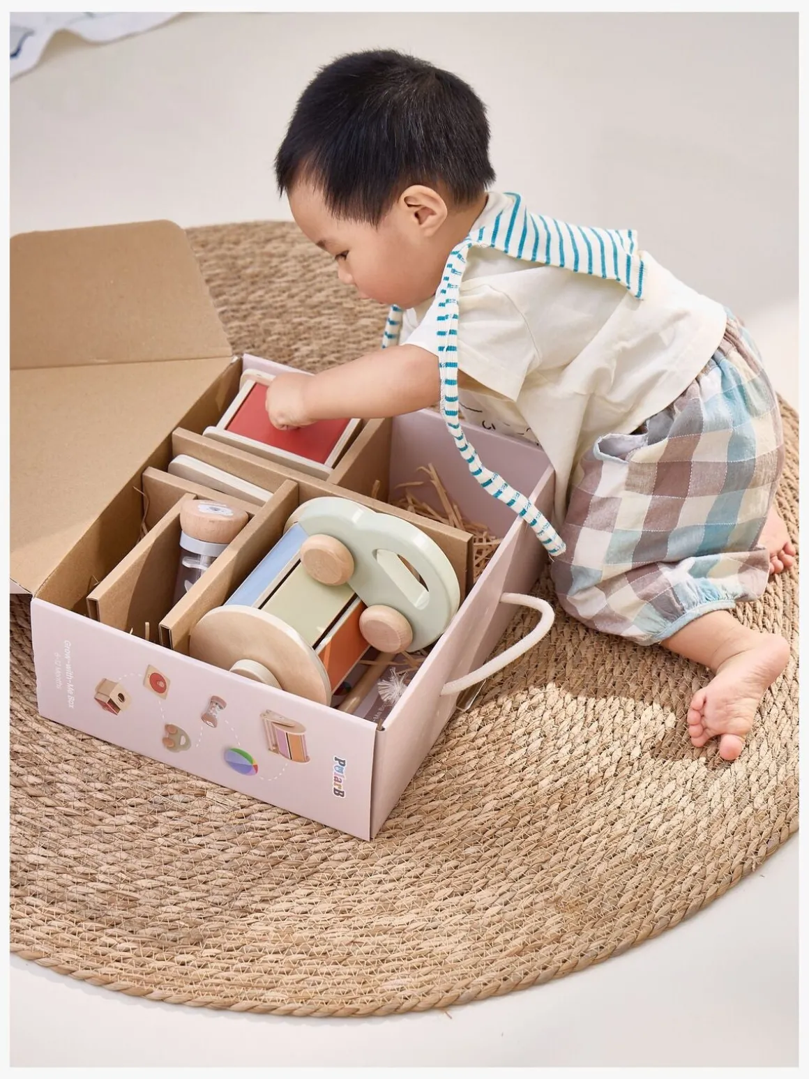 – Indeholder: 1 tromme, 1 blød bold, 1 bil, 1 knoppuslespil, 1 skuffe.