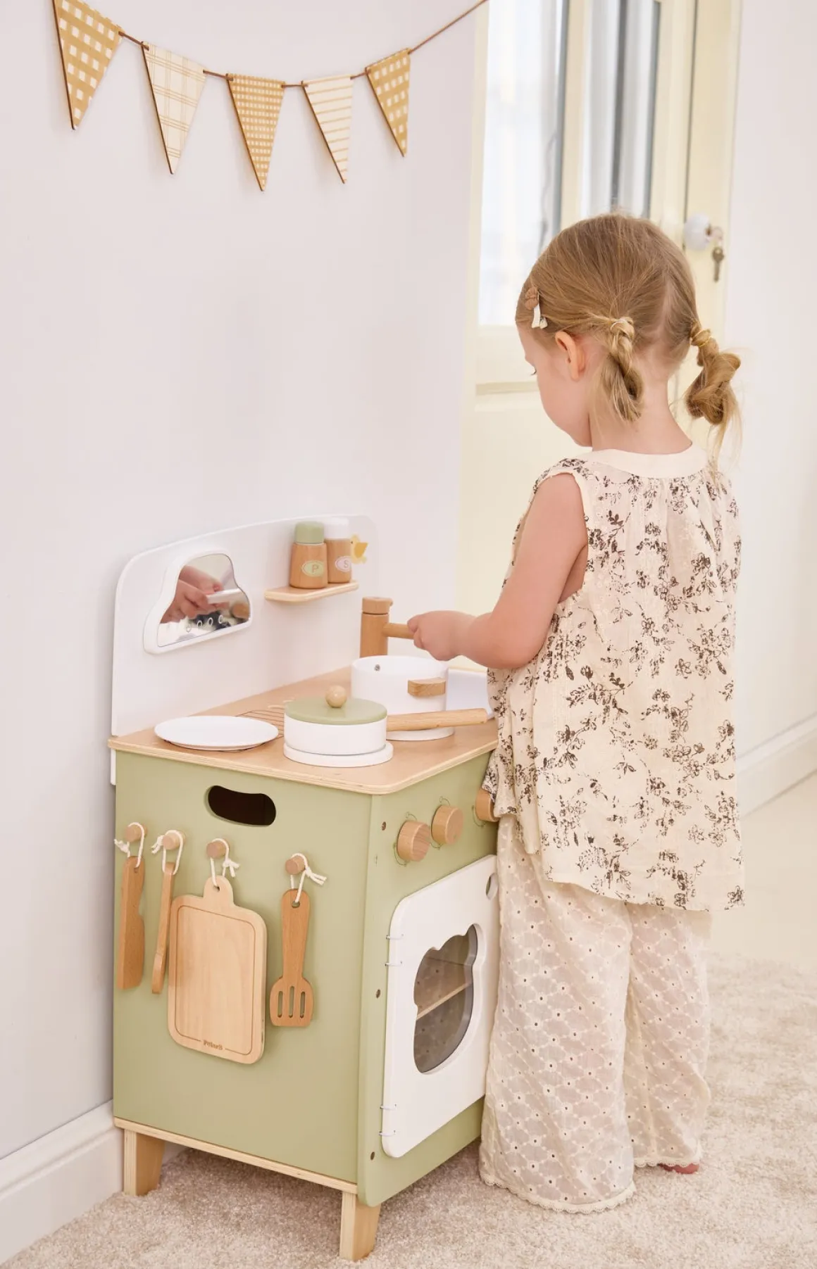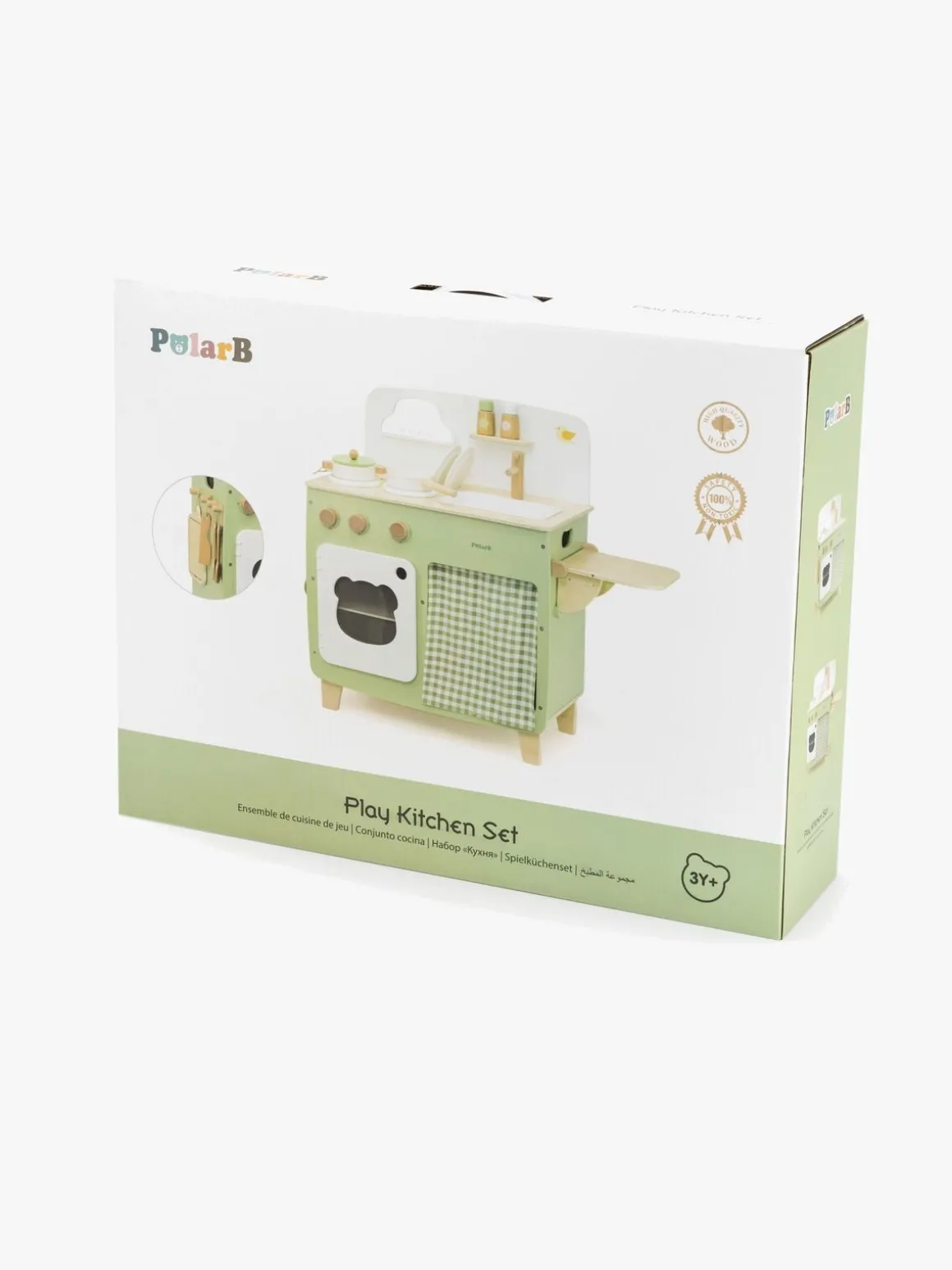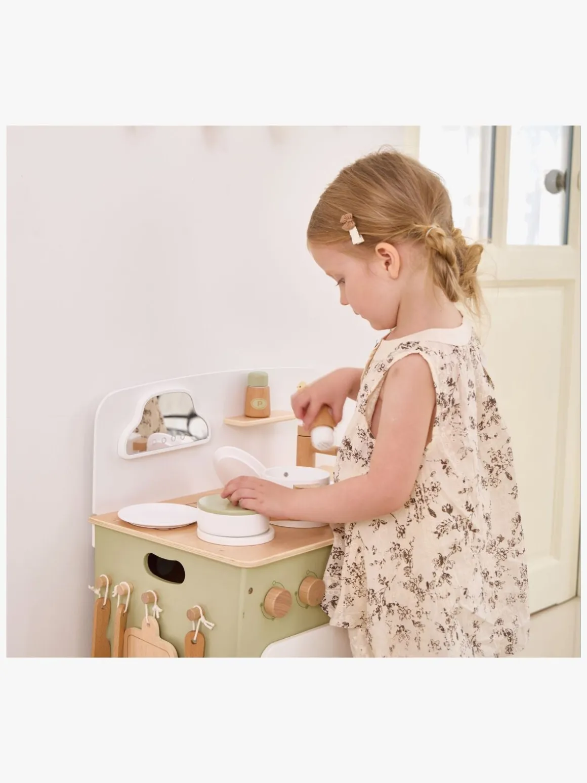 – Indeholder: 1 legekøkken, 1 kasserolle, 1 stegepande, 1 salatskål, 1 peberkværn, 1 skærebræt, 1 ske, 1 spatel, 1 legetøjskniv, 1 tallerken.