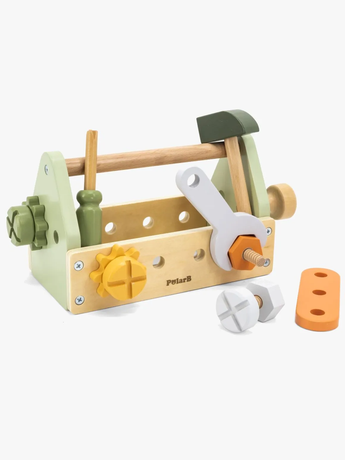 – Indeholder: 1 værktøjskasse, 1 hammer, 1 skruetrækker, 1 skruenøgle, 5 bolte, 4 møtrikker, 2 tandhjul, 2 byggeplader.