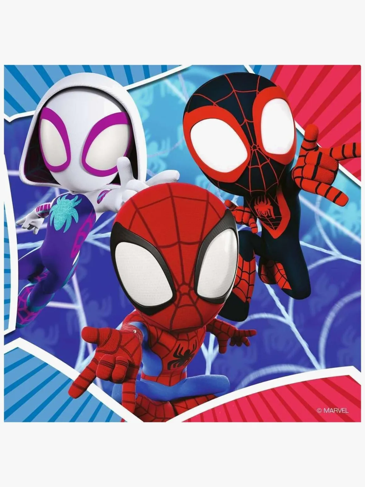 – Indeholder 3 puslespil med 49 brikker i hvert.