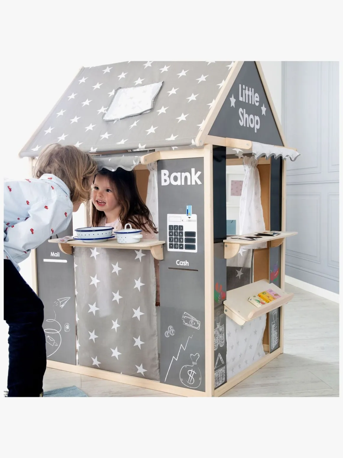 – Leg købmand, posthus, kiosk eller bank.