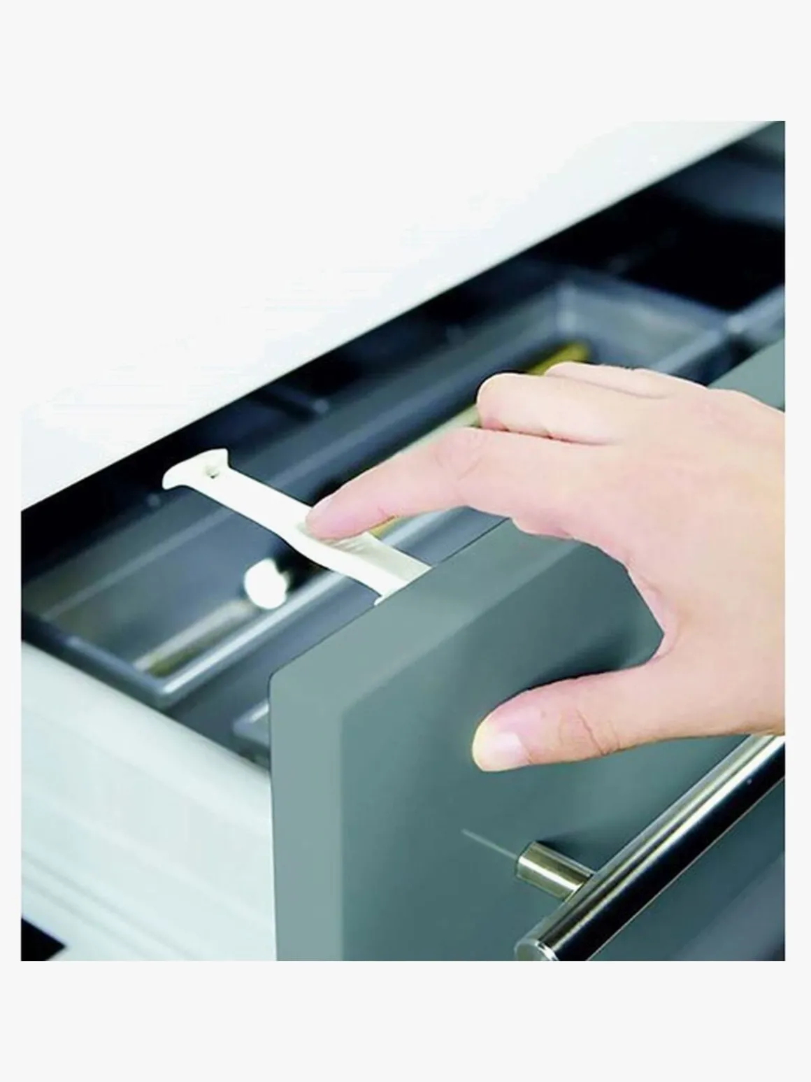 – Forhindrer børn i at åbne skuffen nok til at kunne nå indholdet.