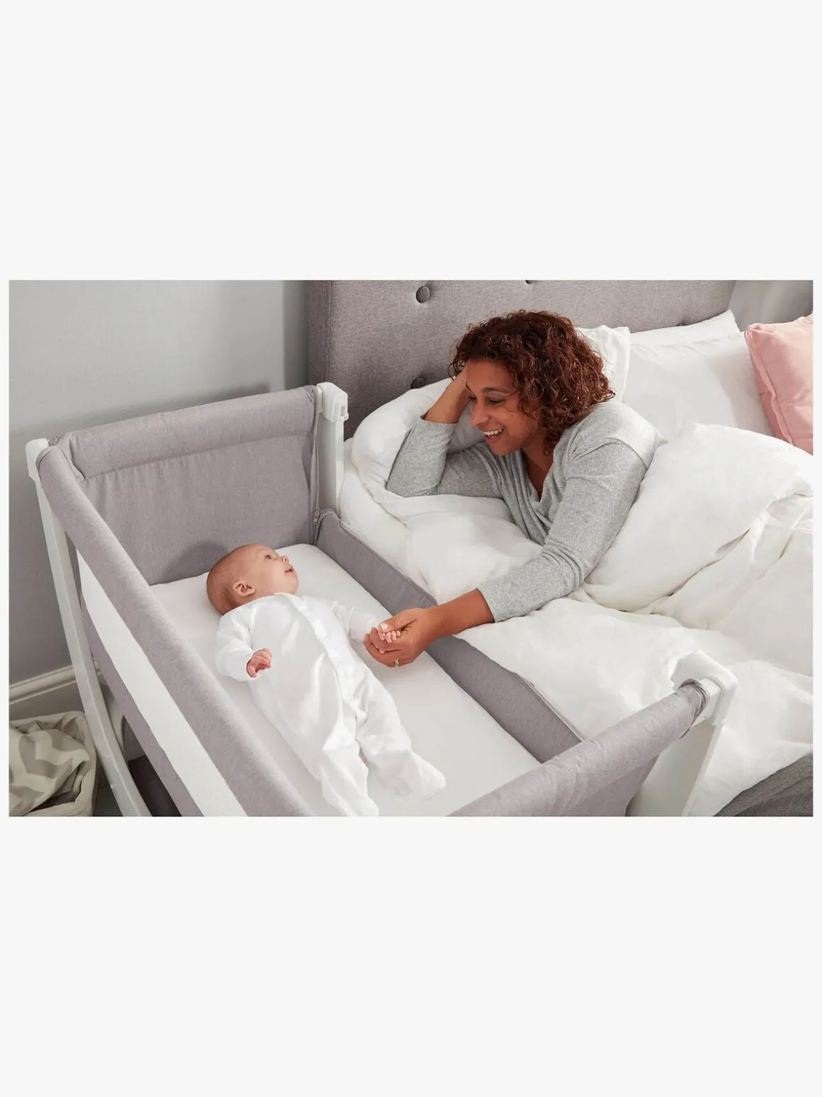– Denne Shnuggle bedside crib kan laves om til en børneseng ved hjælp af en Shnuggle Air konverteringsindsats (sælges separat). Dette gør, at sengen kan bruges i længere tid.
