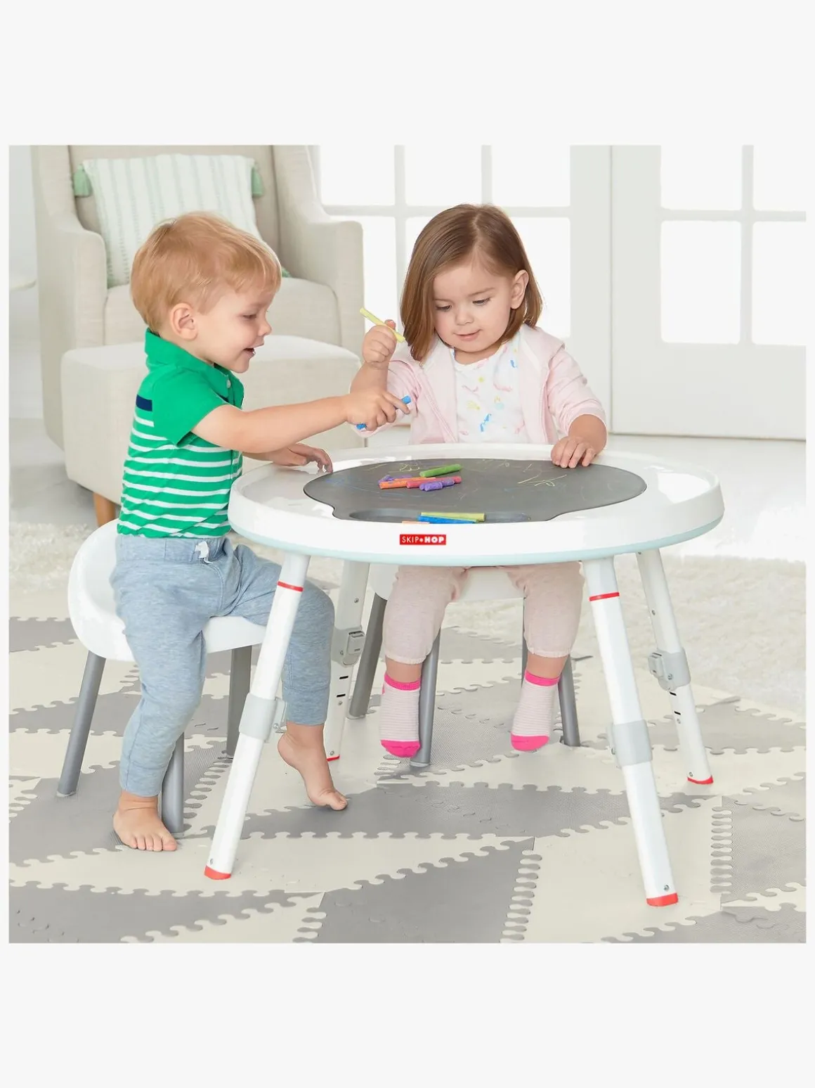 Skip Hops aktivitetscenter er designet i samarbejde med børnelæger, så dit barn får den rette støtte i både leg og indlæring.