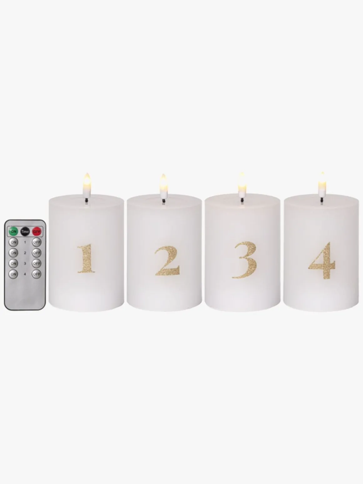 – 4-pak stearinlys med medfølgende fjernbetjening.