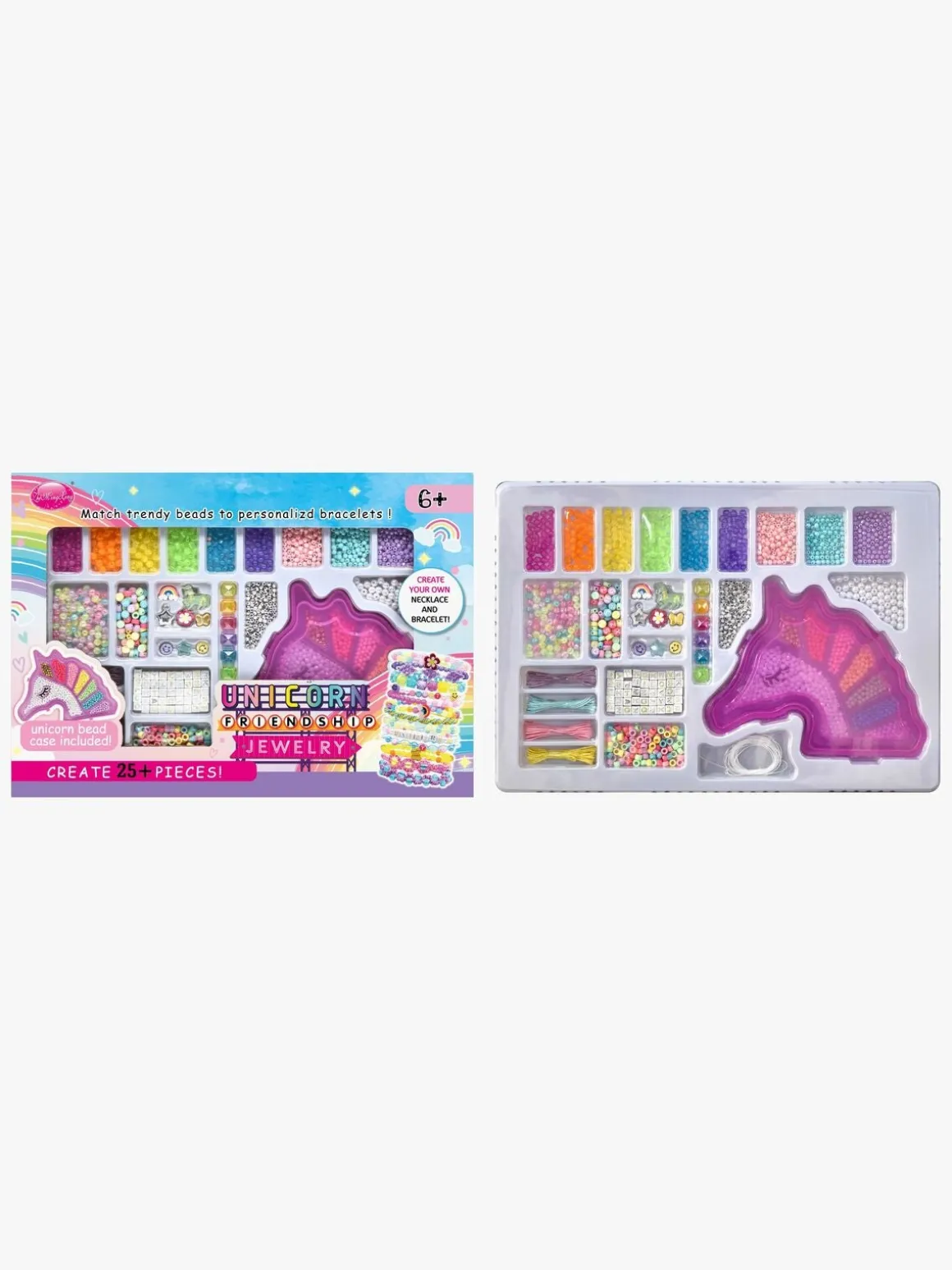 – Indeholder en perleæske, der er formet som en enhjørning.
