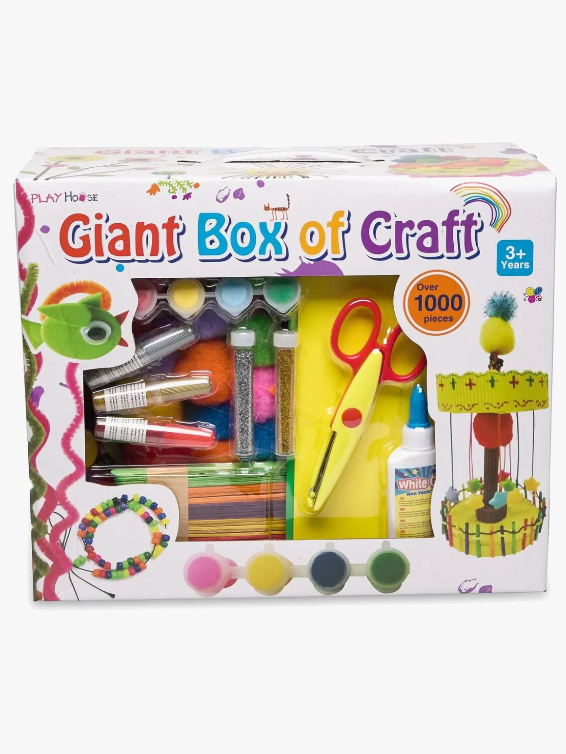 – Indeholder: saks, perler, piberensere, penne, lim, papir i forskellige farver, pomponer, filt, maling, glitter og meget mere!