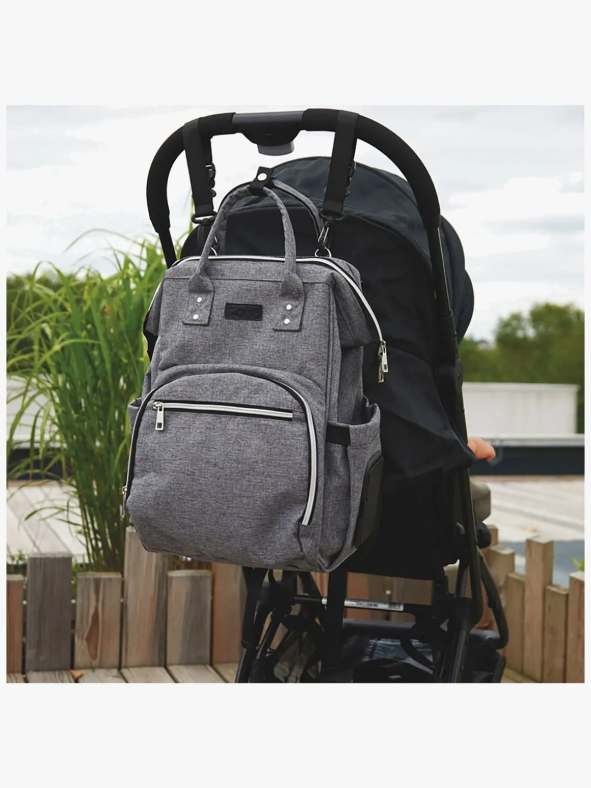 – Hæng den på barnevognen eller bær den som en rygsæk.