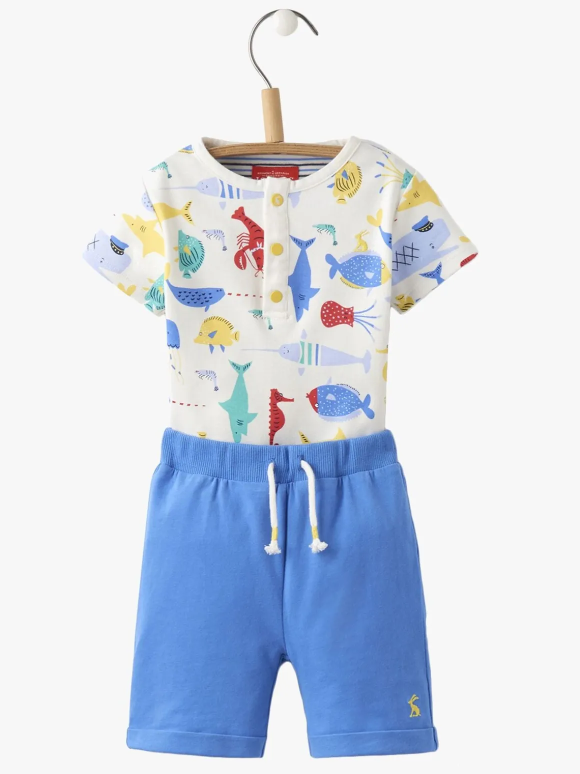 Et 2-pack Granddad-sæt fra Tom Joule. Sættene består af korte bukser og mønstrede t-shirts i et rigtigt fint design. Helt perfekt til de varme sommerdage eller en tur til byen.