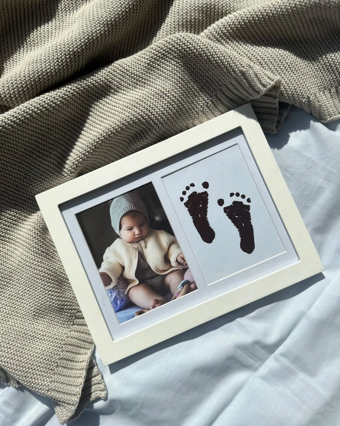 – Komplet sæt med alt, hvad du skal bruge for at lave et aftryk af barnets fod eller hånd derhjemme.
