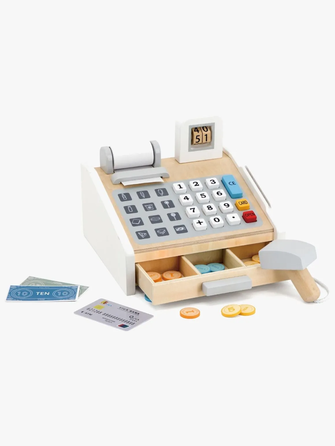 – Inkluderer en scanner, et kreditkort, nogle mønter og sedler.