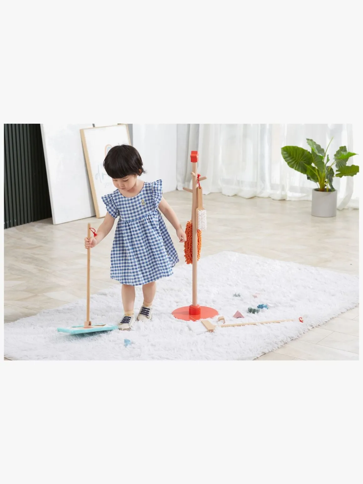 – Indeholder: 1 børste, 1 fejekost, 1 støvekost, 1 fejebakke, 1 moppe, 1 stander.