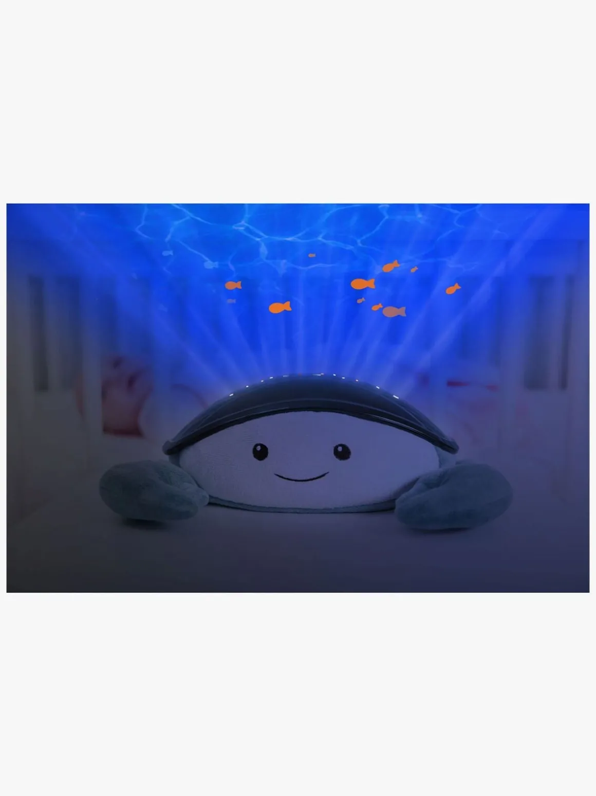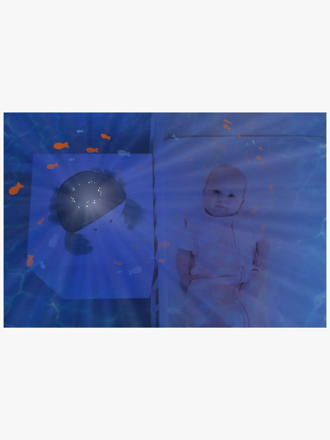 – Trin 2 (10-20 min): En svagere lysintensitet, bevægelige bølger og nu kun få fisk, der svømmer forbi. Musikken skifter til undervandsbobler.