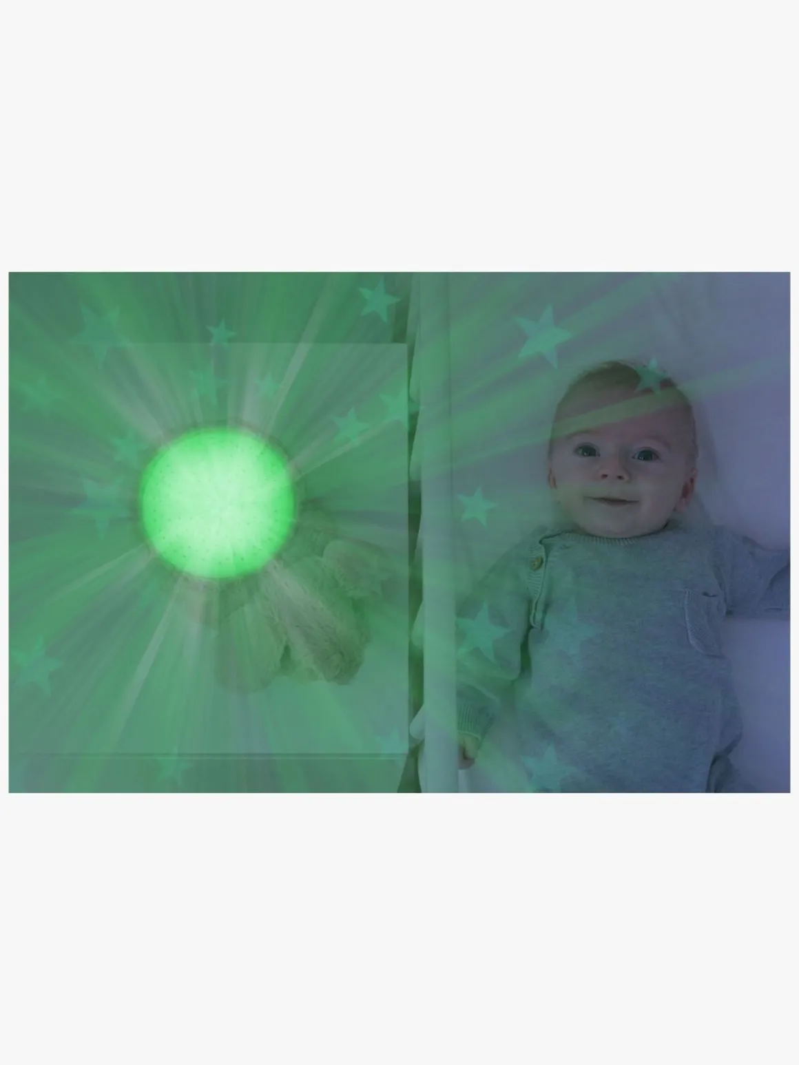 – Projekterer stjerner på loftet i fire forskellige farver: orange, blå, grøn eller flerfarvet.