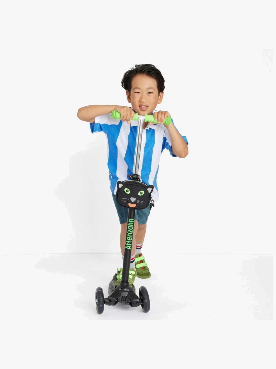 – Fastgøres til cykel eller scooter.