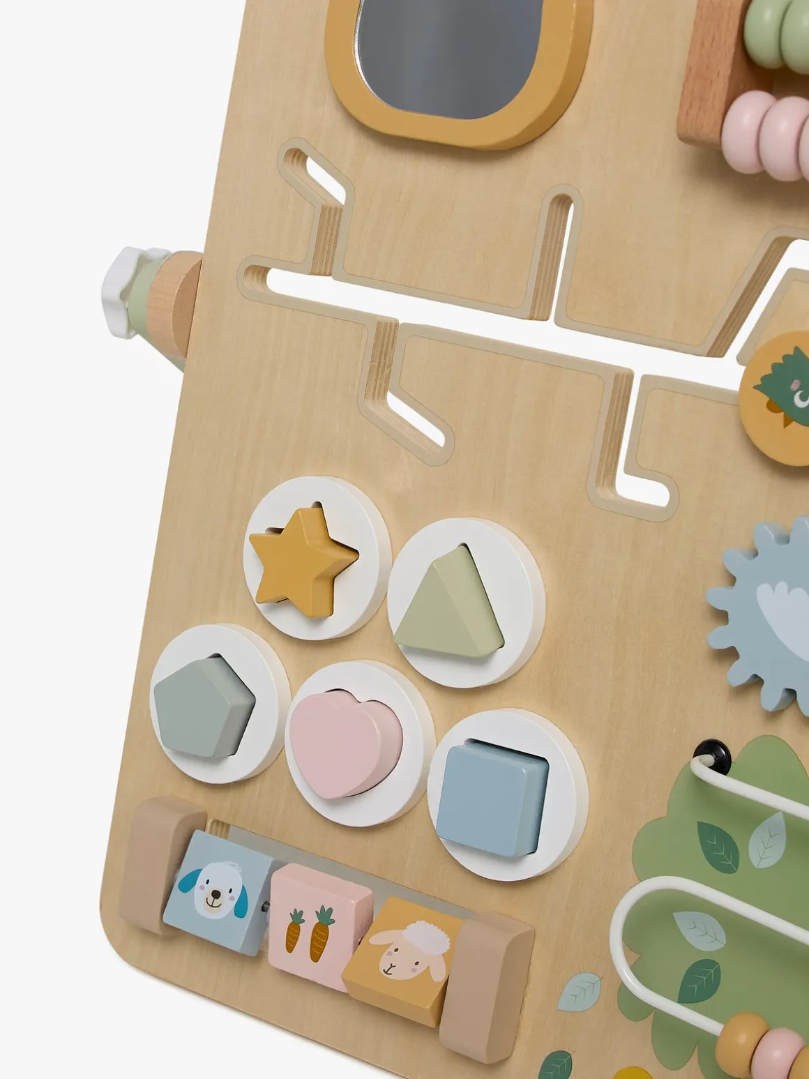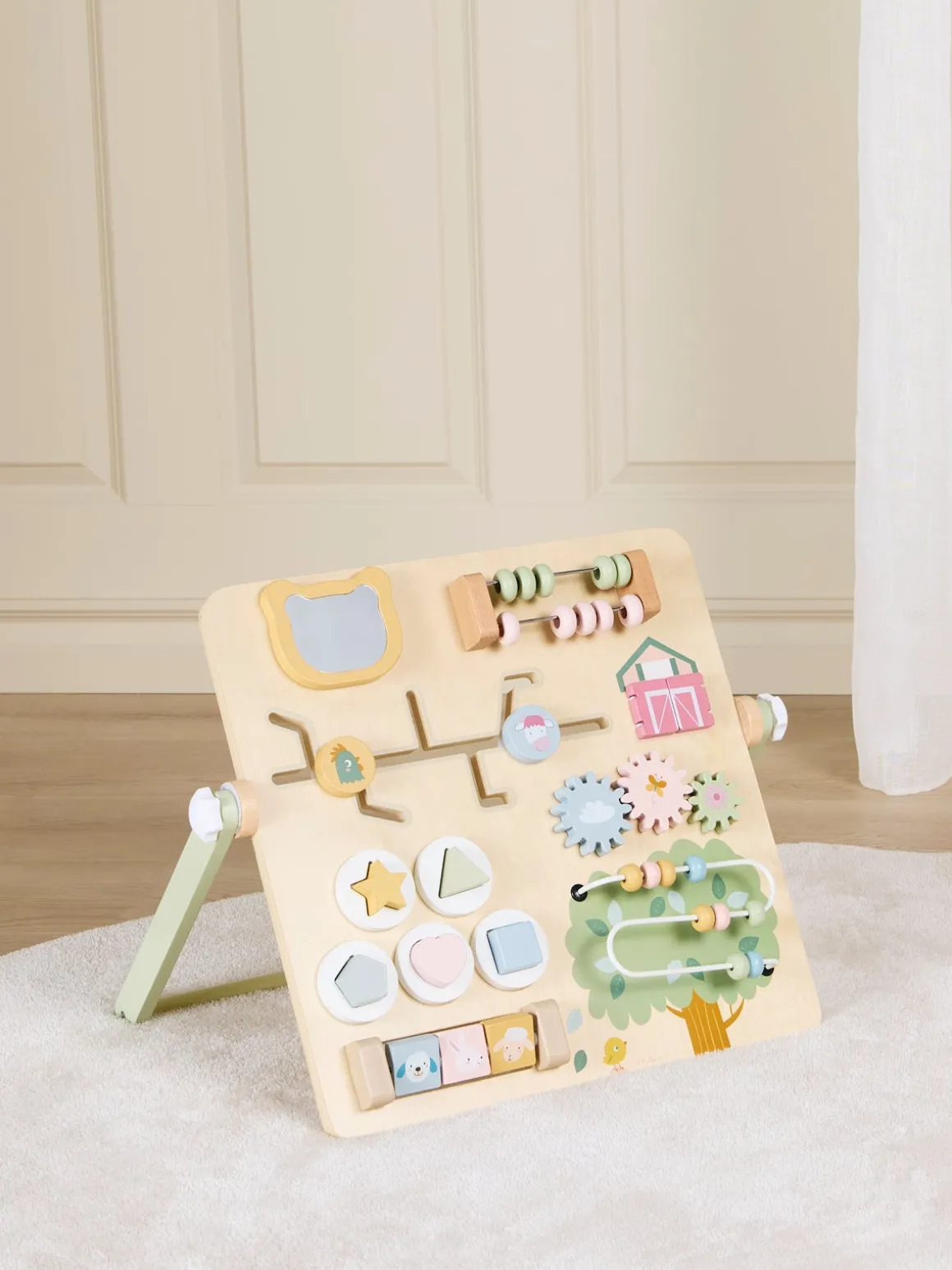 – Sjove farver og et spejl til visuel stimulering.
