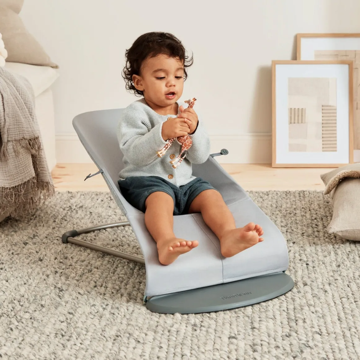 Til skråstolen medfølger et legetøj med bjælde og hængende farverige figurer, der stimulerer dit barns lyst til at lege. Gennem legen lærer dit barn også sin krop at kende, og udvikler sin motorik. Legetøjet passer til alle BabyBjörns skråstole. Det sættes sikkert fast på en måde så dit barn ikke selv kan tage det af. For en voksen er det enkelt at sætte det fast og tage det af.