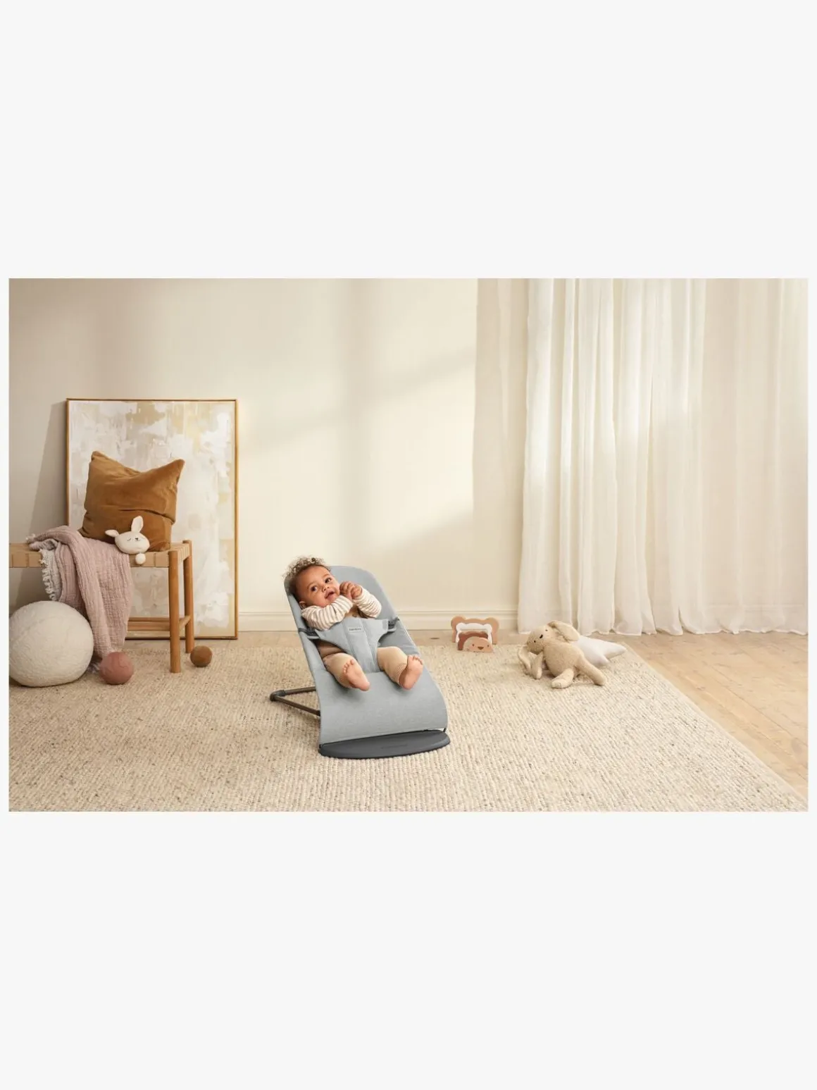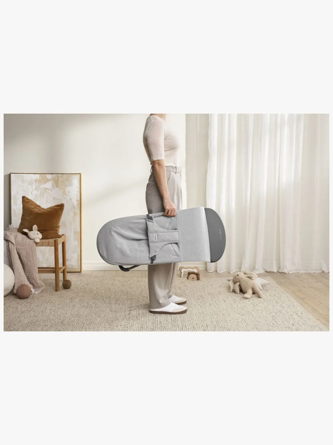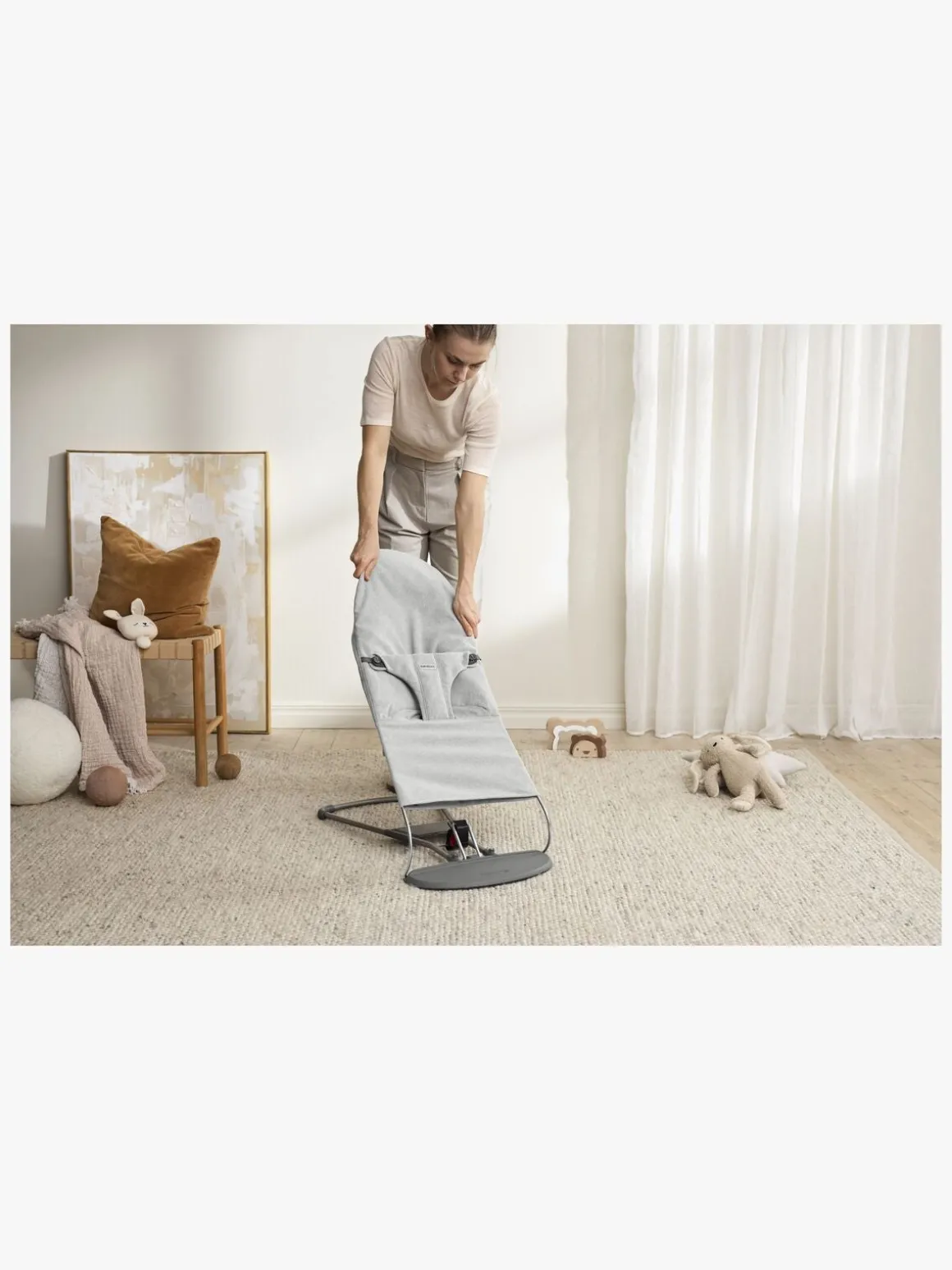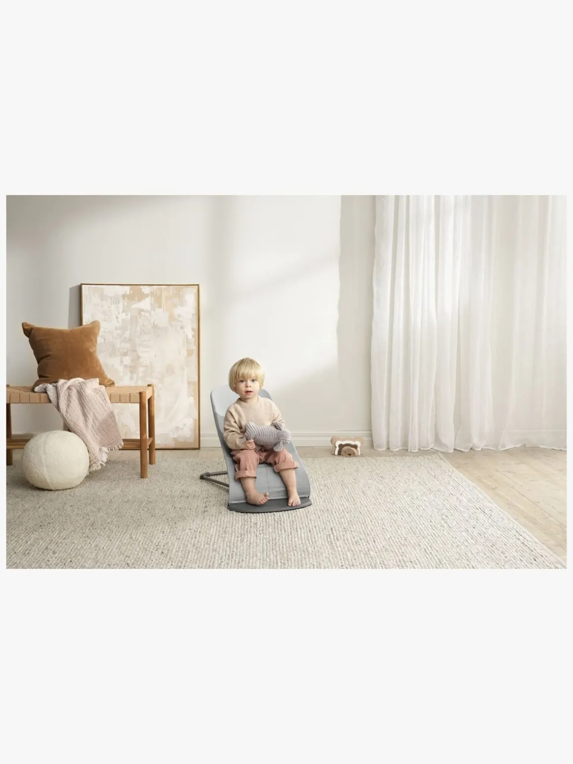 – Når barnet kan sidde uden støtte, kan skråstolen laves om til en stol.