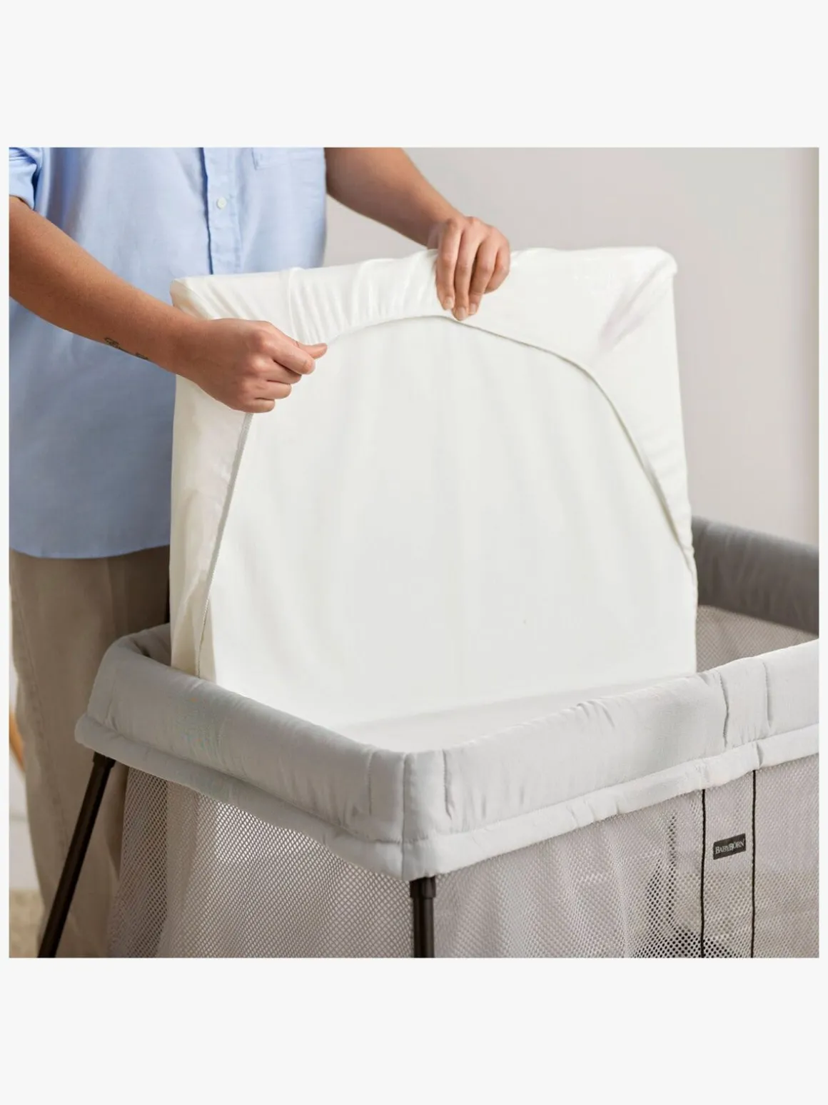 BabyBjörn Light Rejseseng inkl. Overtrækslagen er perfekt til rejsen. I denne pakke indgår både rejseseng og et overtrækslagen.