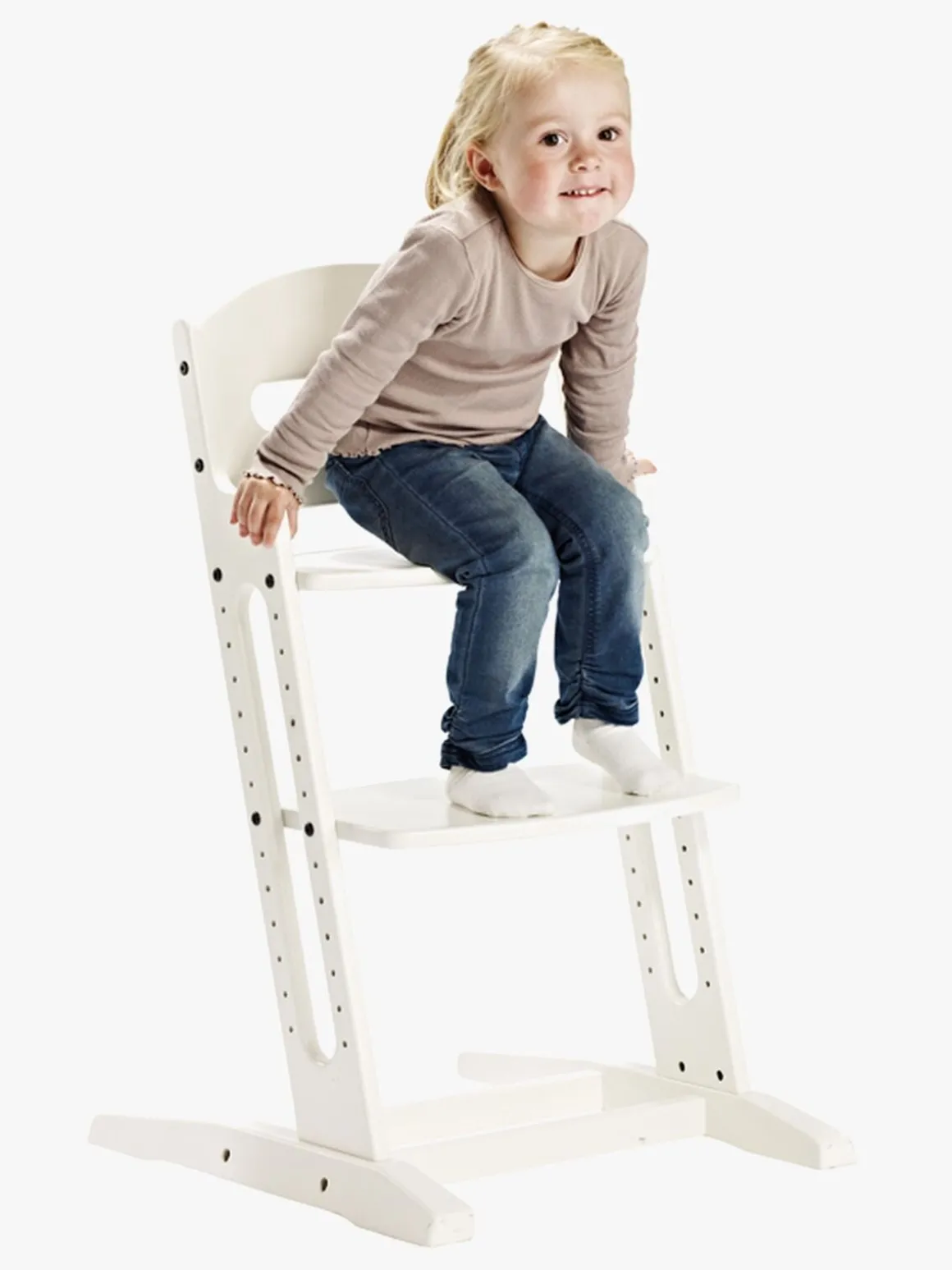 Stolen er stabil og sikker ved klatring, takket være dens ekstra lange støttefodder som sikrer at stolen ikke kan tilte. Danstolen opfylder den eupæriske sikkerhedsstandart EN14988-1:2006 og er godkendt af Danske Varefakta.