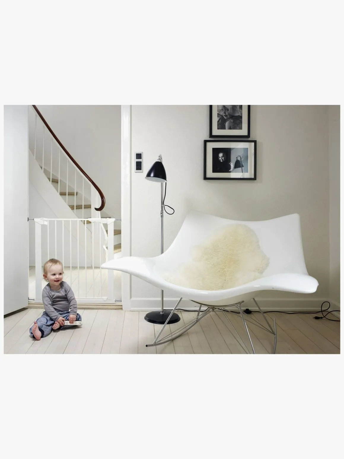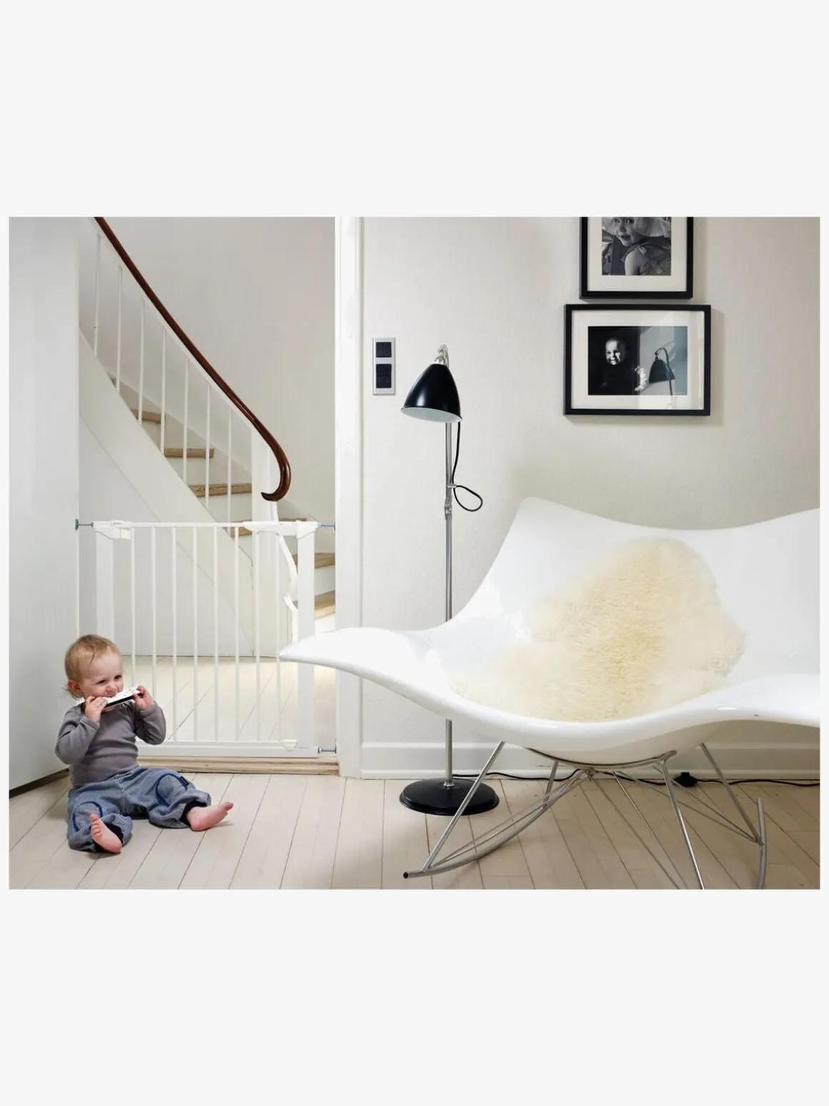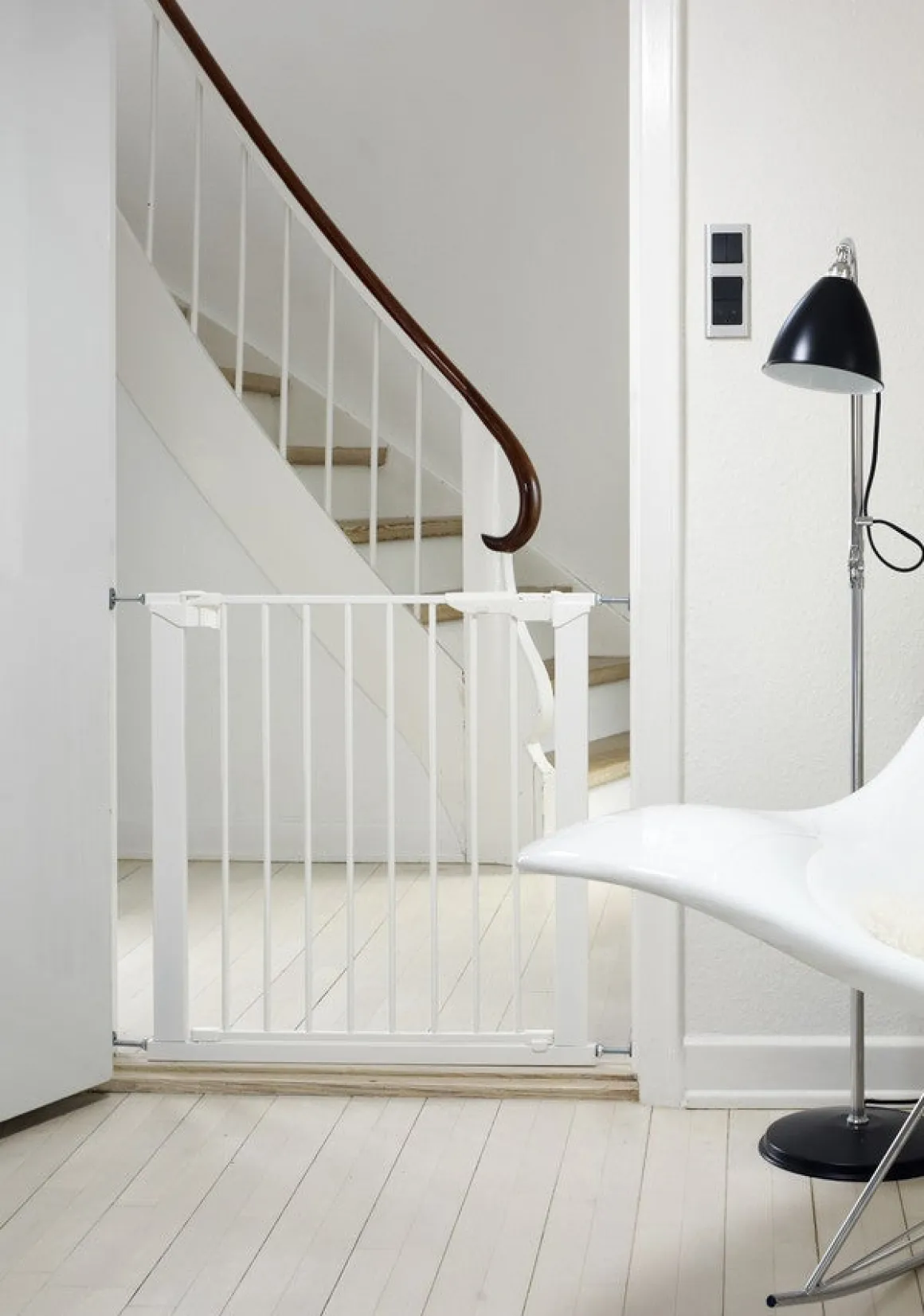 - – BEMÆRK! Vi anbefaler kun at montere spændingslåger i en døråbning eller i bunden af en trappe. På grund af faldrisikoen anbefaler vi, at du i stedet monterer en skruelåge øverst på trappen.