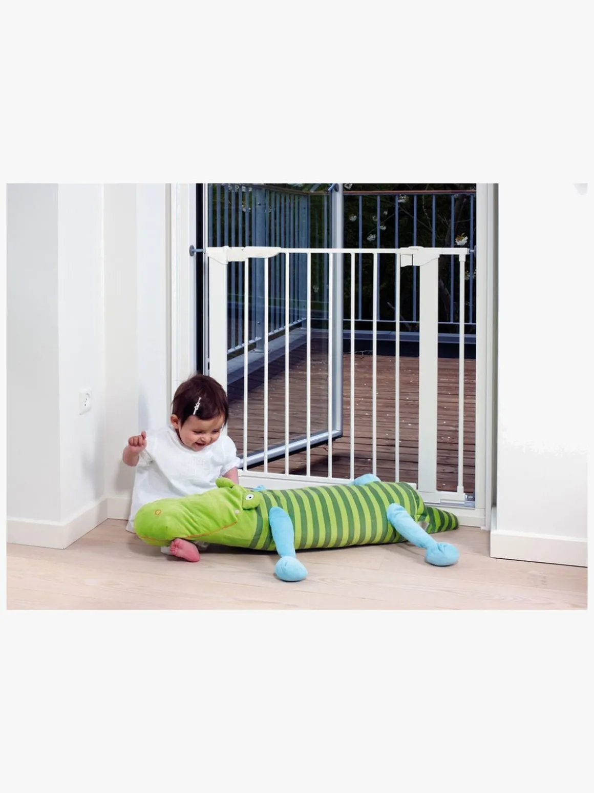 OBS! Gitteret passer specifikt til det døråbningsmål, der er angivet i ovenstående tekst. Hvis ikke du finder et egnet gitter, der passer til dit døråbningsmål, kan du forlænge eller forkorte dit gitter ved at bruge et BabyDan Reduce a Gate-kit eller et BabyDan Extend a Gate-kit.