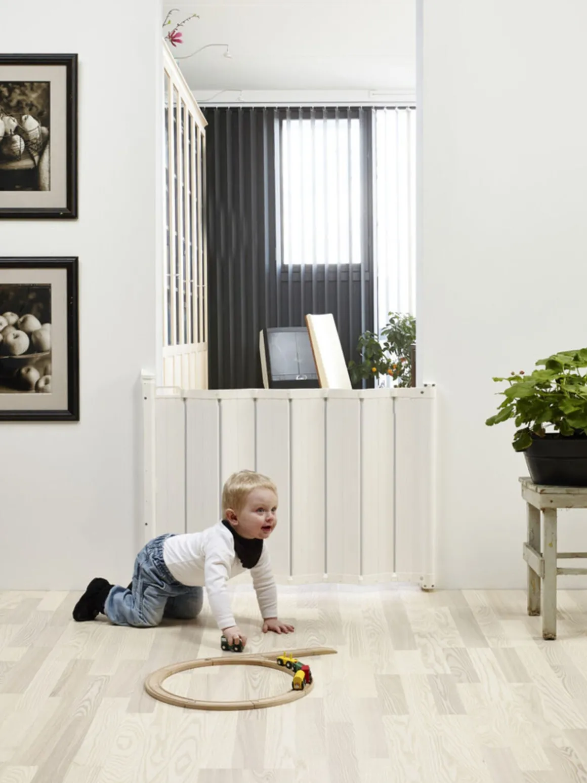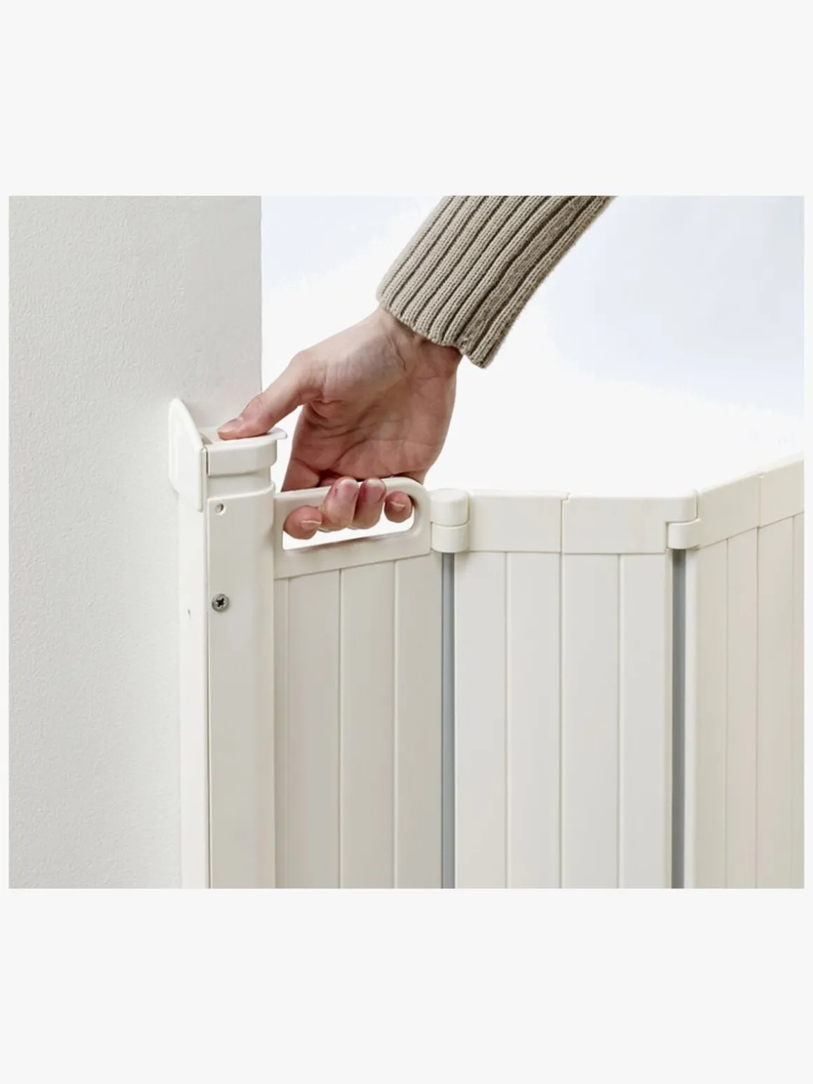 Gitteret er nemt at åbne for en voksen, som blot behøver at anvende en enkelt hånd for at afbryde låsefunktionen. Låsen åbnes i en to-trinsbevægelse, som sikrer at børnene ikke kan låse den op på egen hånd.