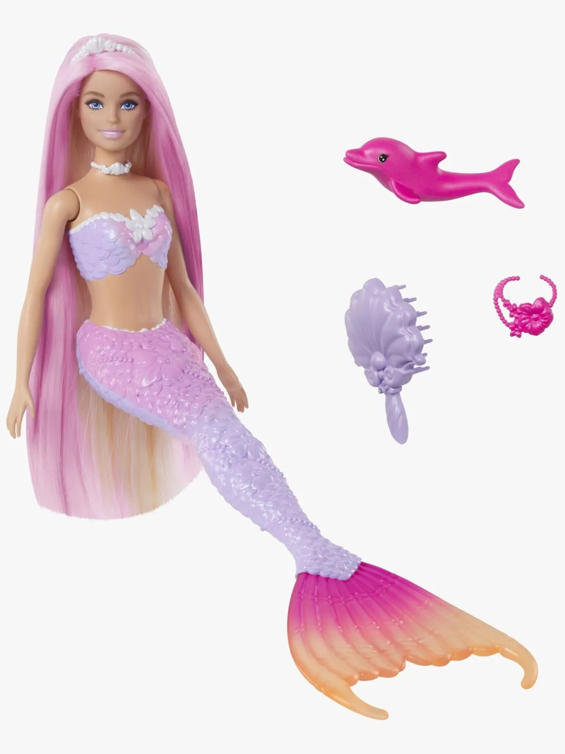 – Indeholder: 1 barbiedukke, 1 delfin, 1 hårbørste, 1 hårbånd, 2 halskæder.