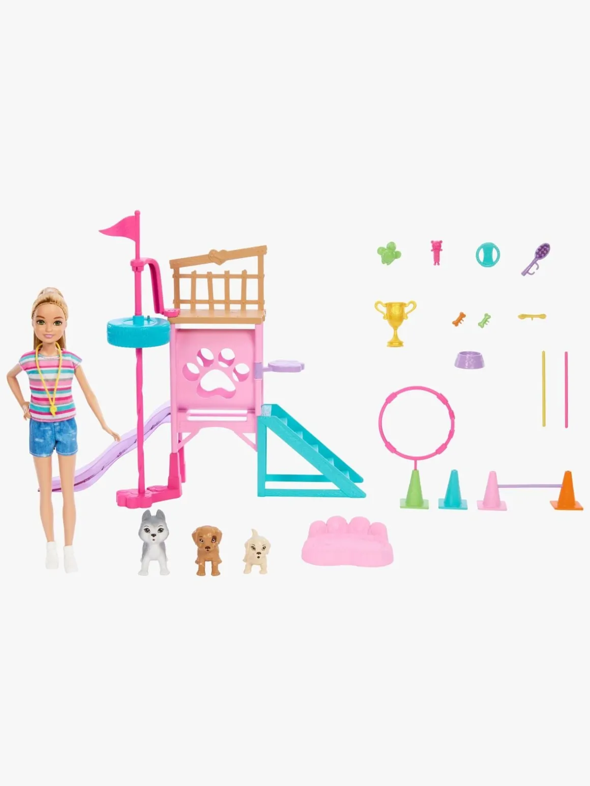 – Indeholder: 1 Stacie-dukke, 3 hunde, 1 forhindringsbane, 18 stk. tilbehør.