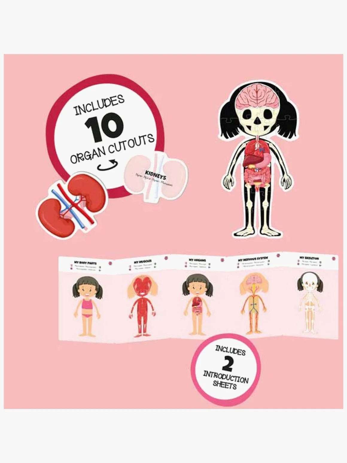 – Indeholder også 10 organer til at placere på puslespillet og en folder, der forklarer om de forskellige organer.