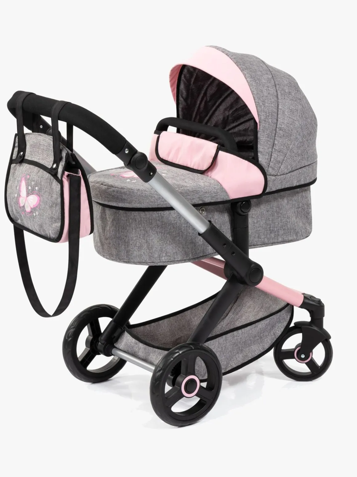 – Indeholder: 1 dukkevogn, 1 seng, 1 sovepose, 1 pusletaske, 1 tallerken, 3 bestik, 1 tudekop, 1 sut.